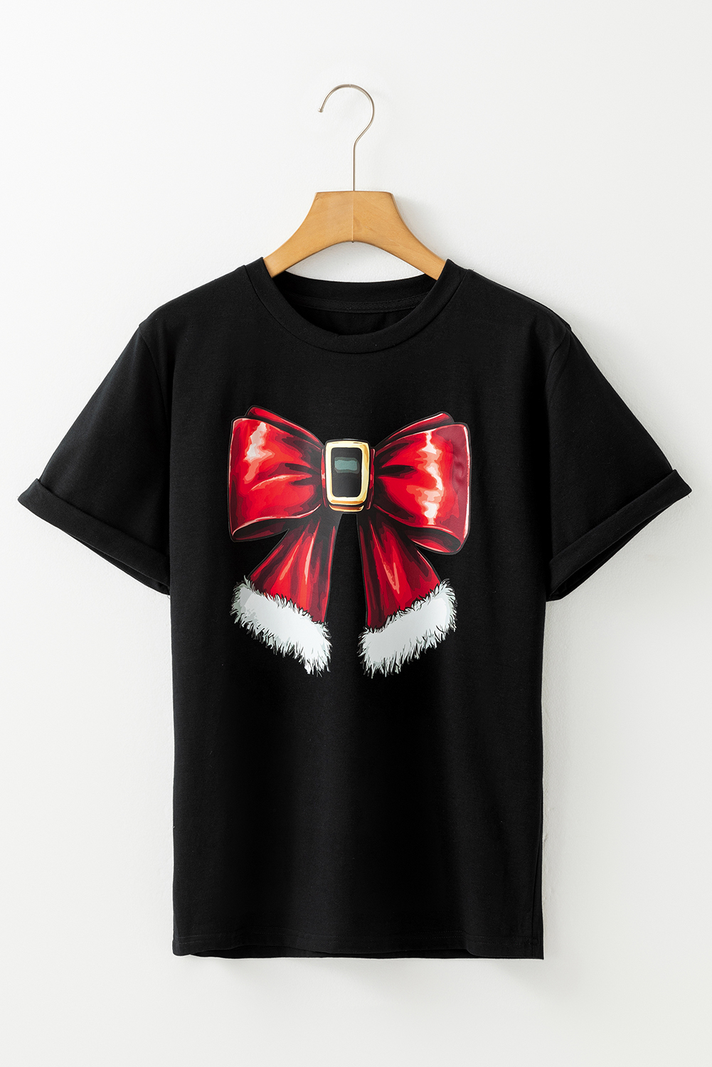 Black Christmas Big Bowknot Graphic Crewneck T Shirt