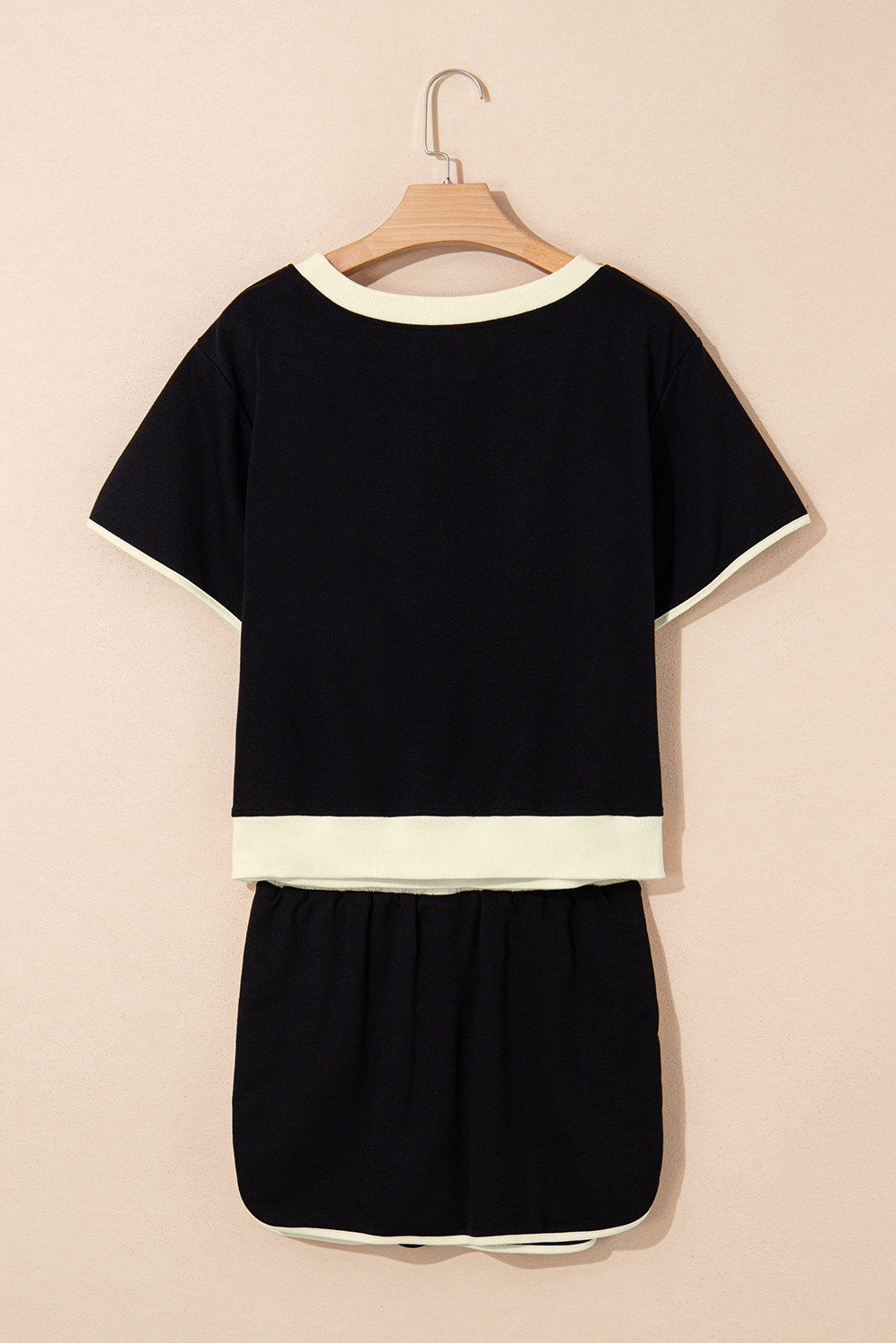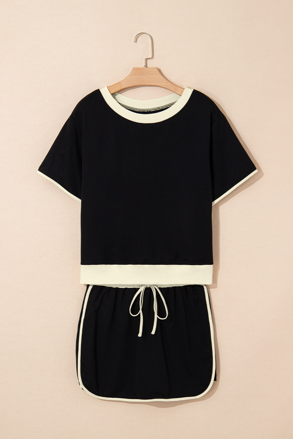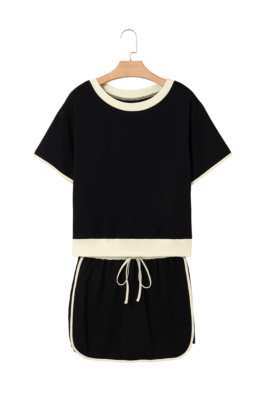 Black Colorblock Edge Drop Shoulder T Shirt and Skort 2Pcs Set