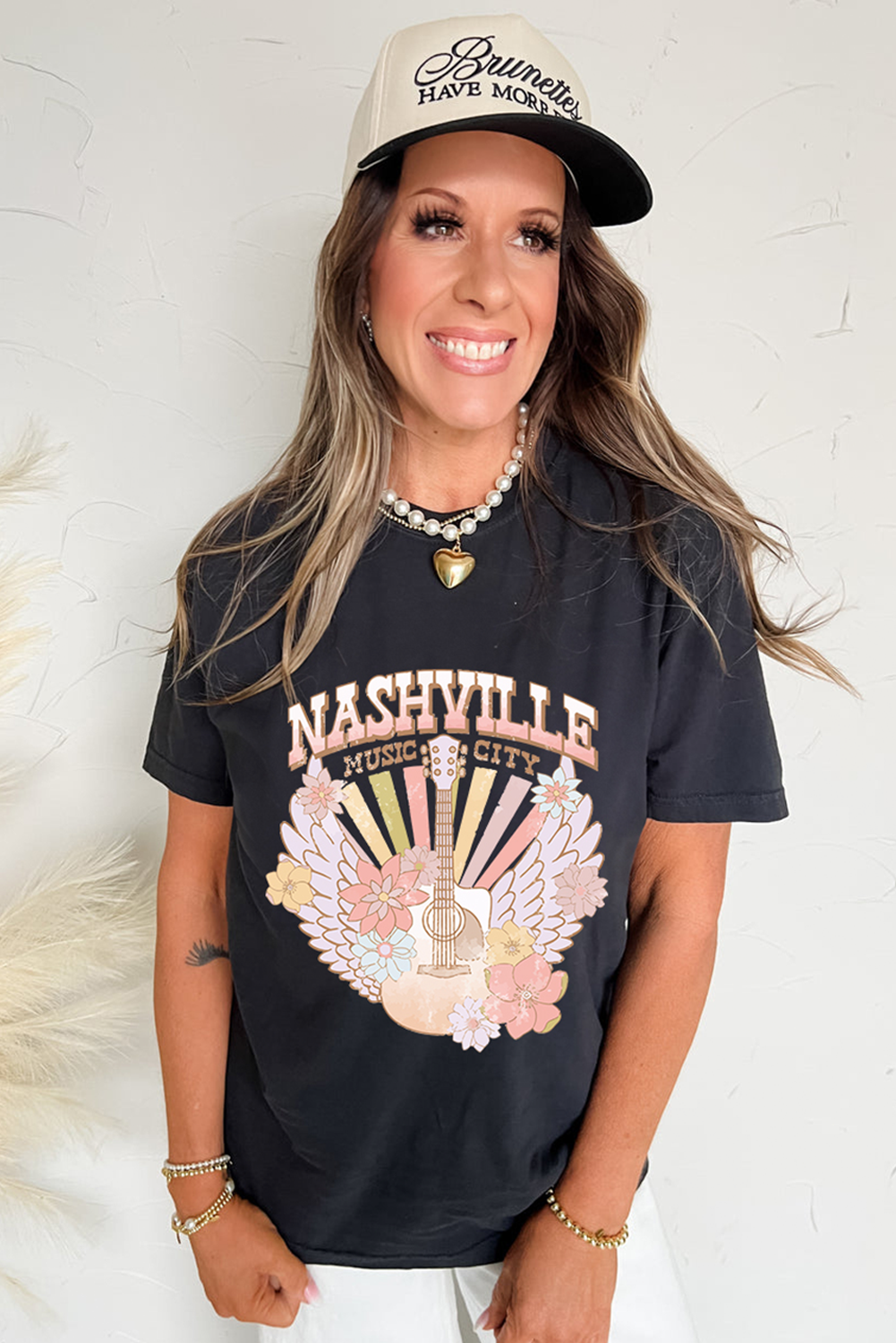 Black Nashville Music City Guitar Angel Wing Graphic Tee