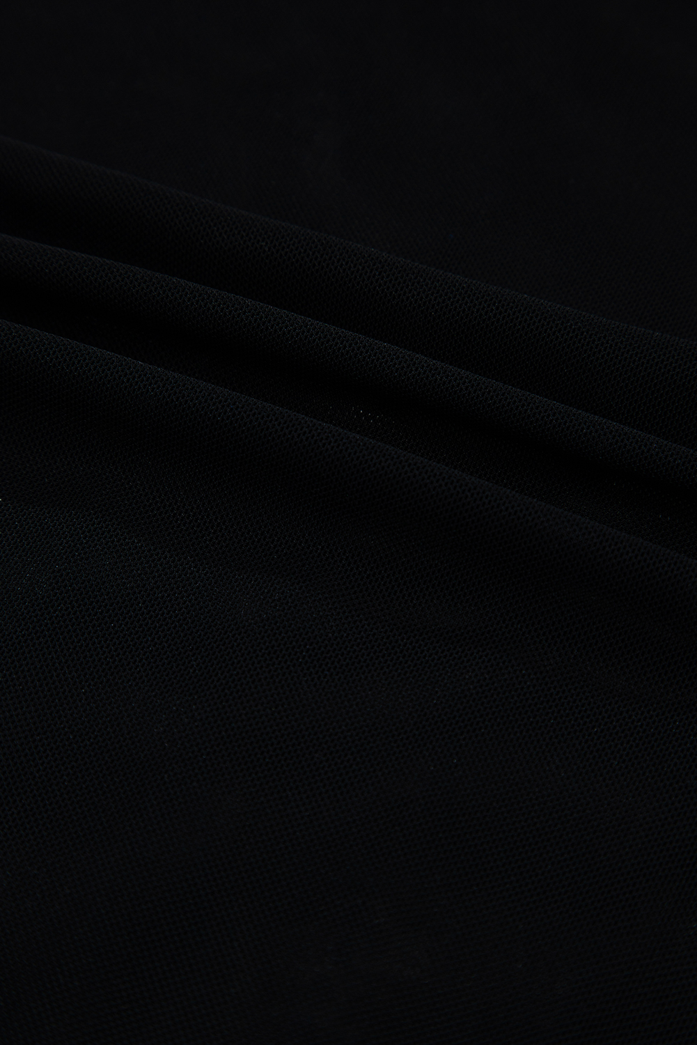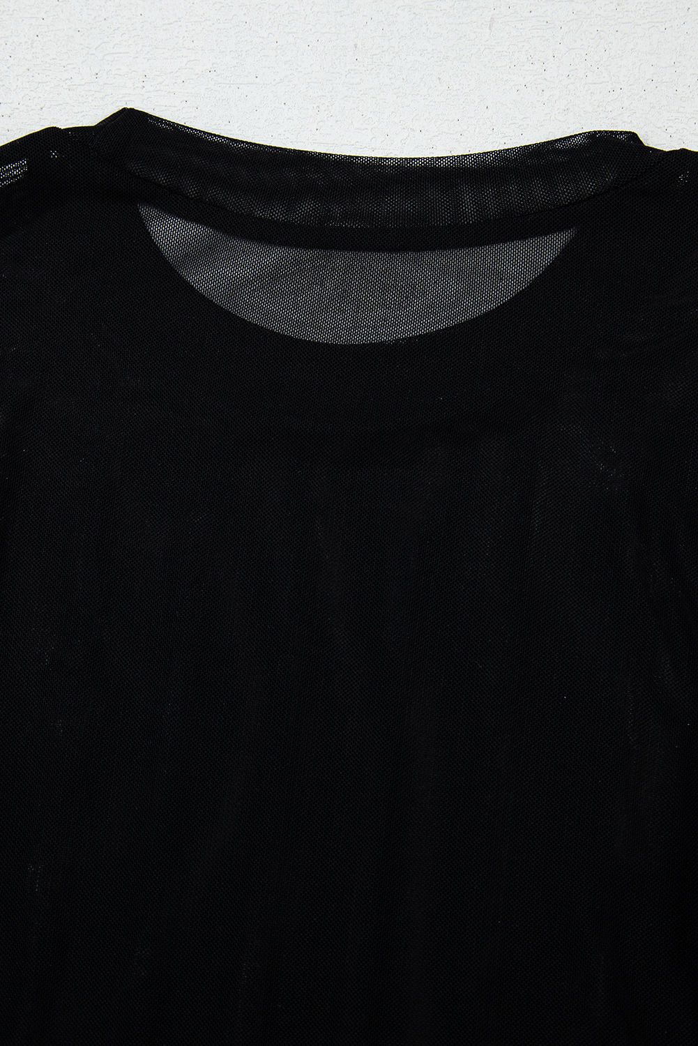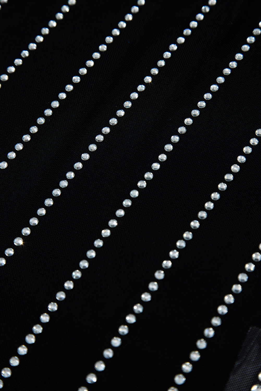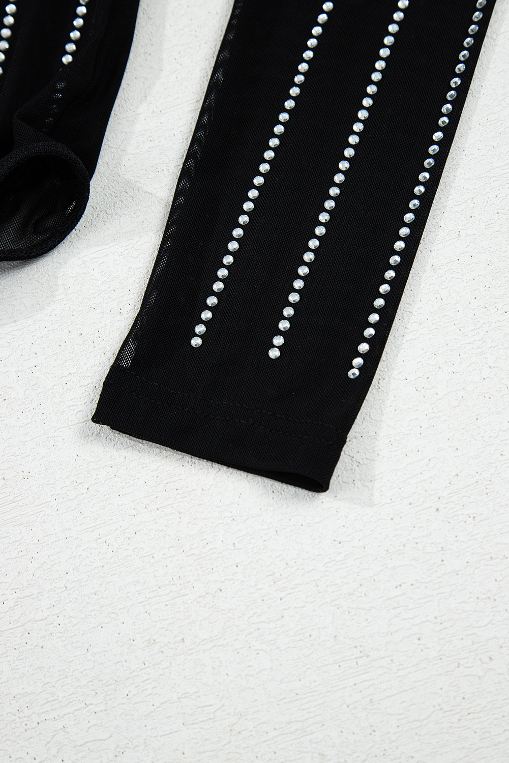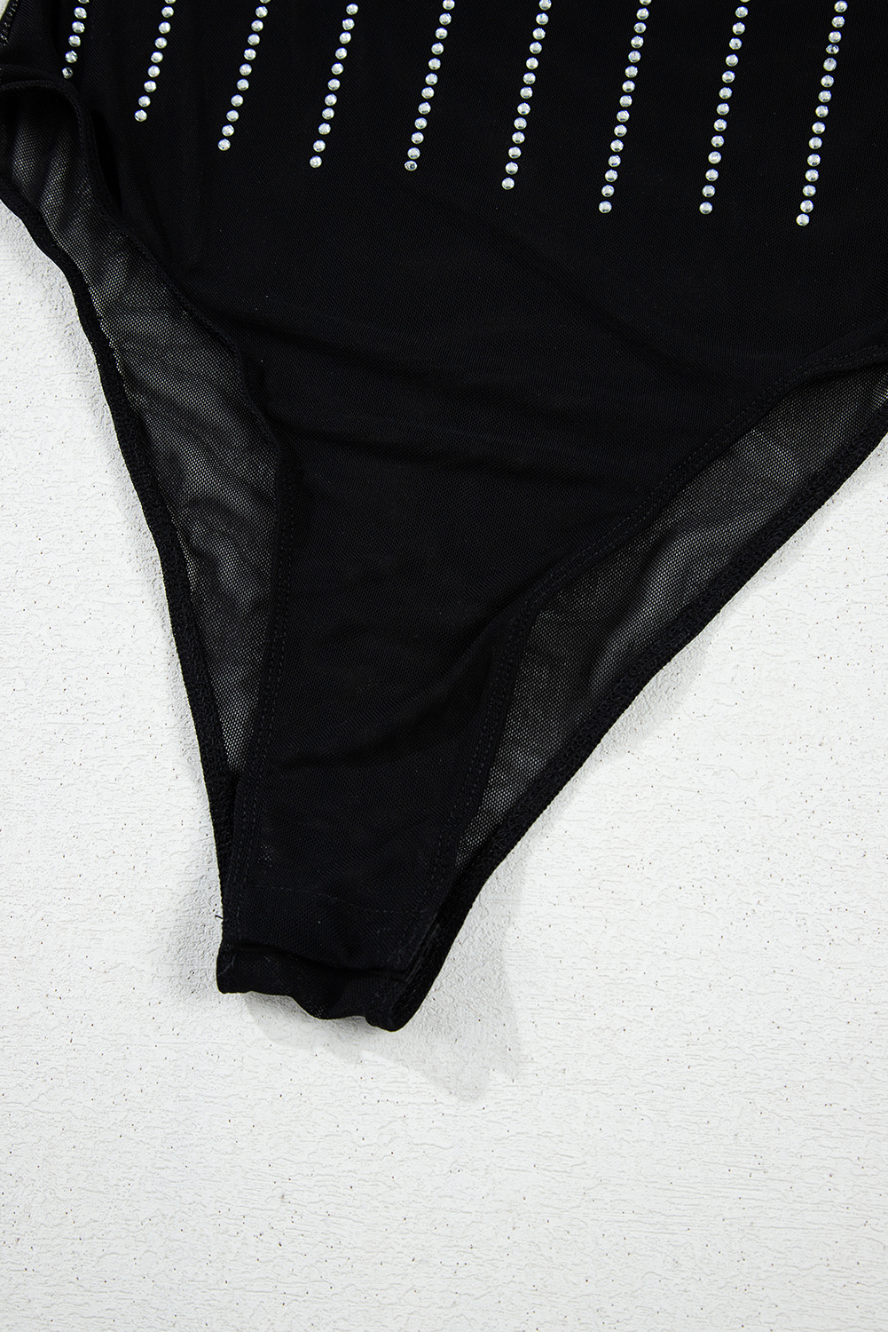 Black Rhinestone Decor Striped Mesh Long Sleeve Bodysuit
