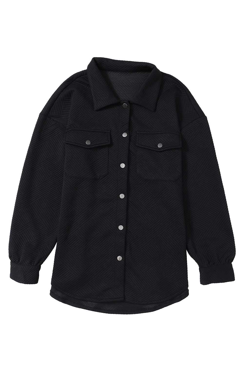 Black Solid Textured Flap Pocket Buttoned Shacket