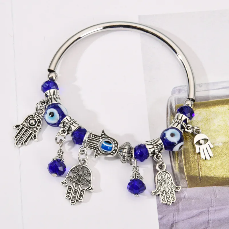 Wholesale bohemian devil's eye palm alloy glass plating women's bracelets