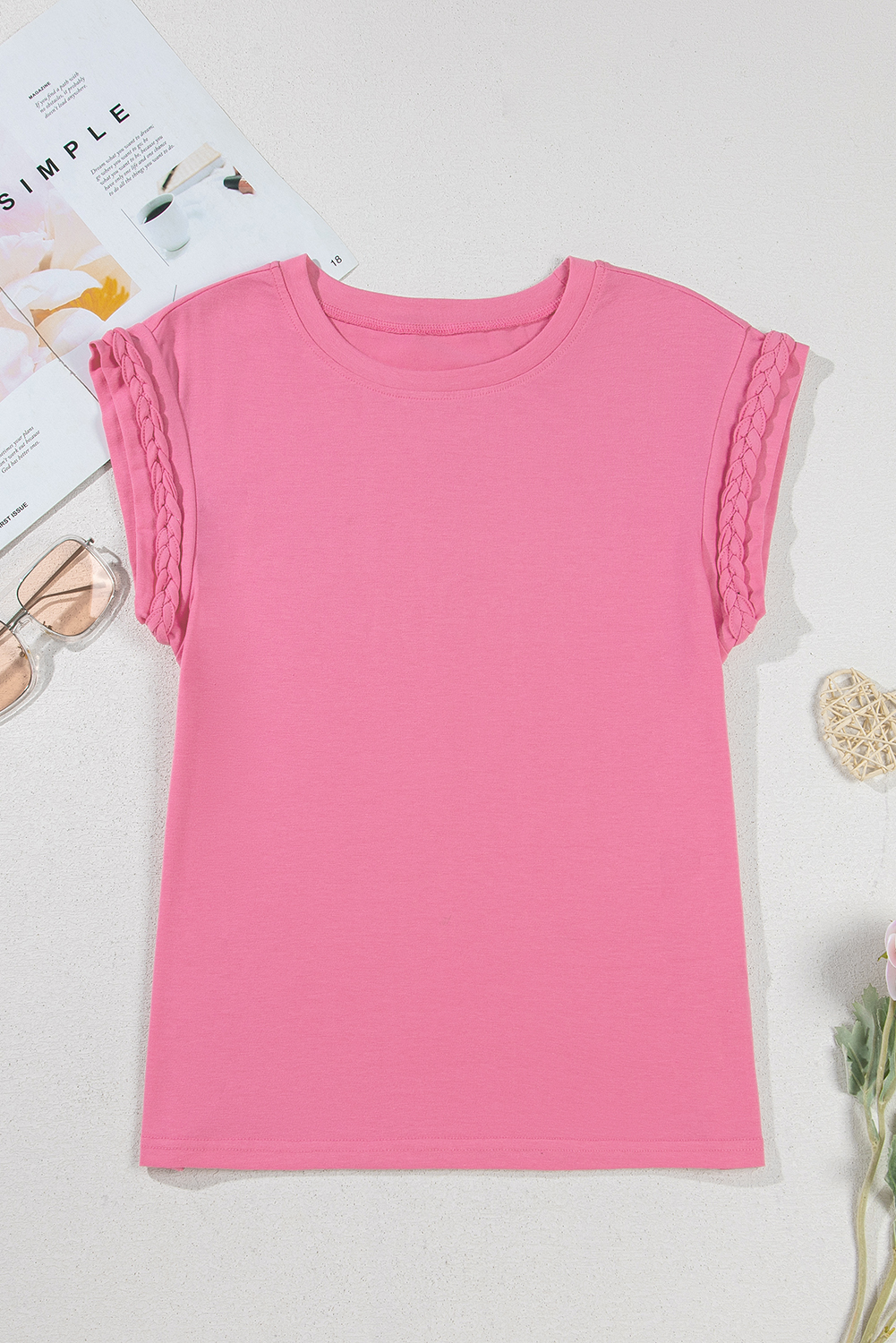 Bonbon Braided Cap Sleeve Crew Neck T Shirt