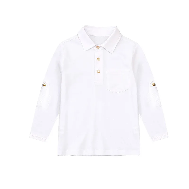 Wholesale Boys' long-sleeved T-shirt cotton shirt girls' middle and big children's white bottoming shirt lapel school uniform class uniform Spring