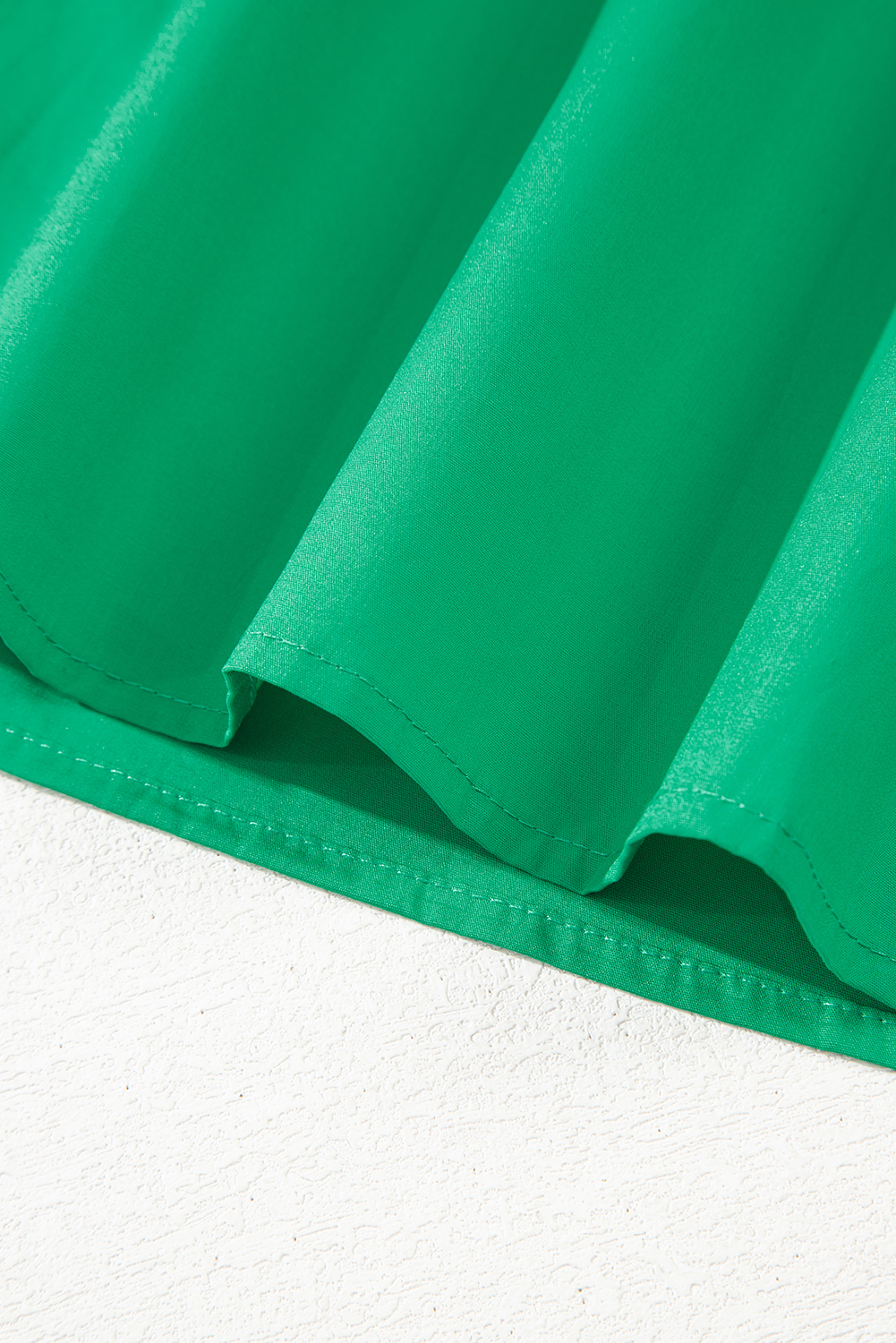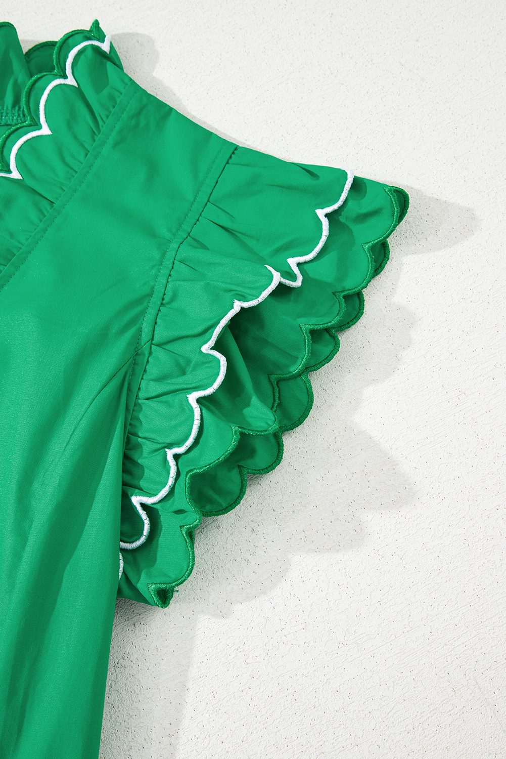 Bright Green Contrast Scallop Trim Layered Short Sleeve V Neck Blouse