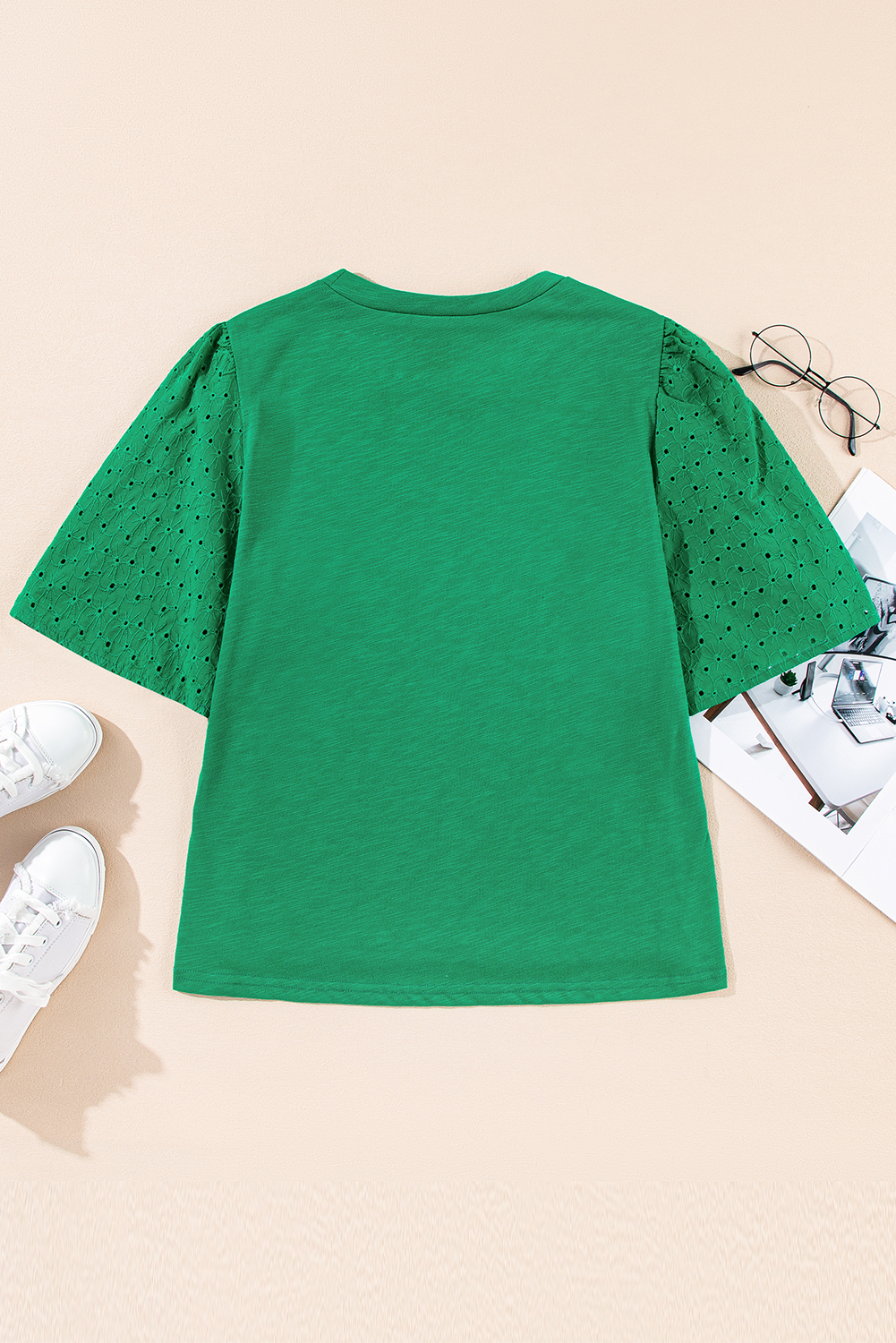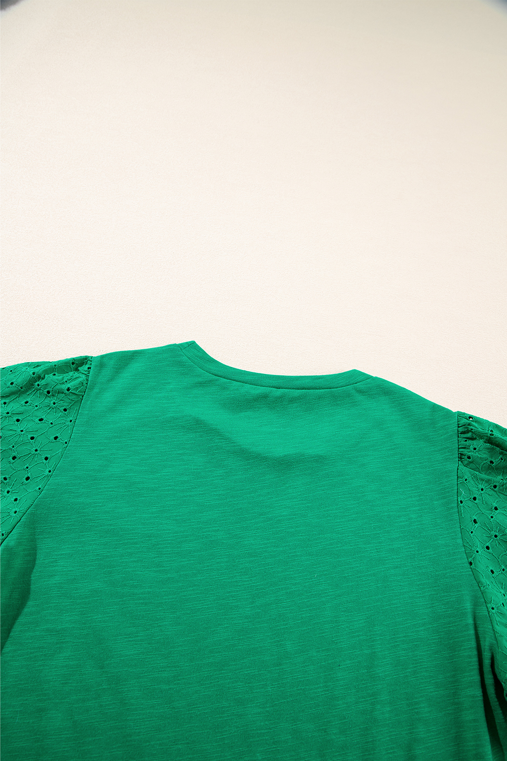 Bright Green Eyelet Embroidered Patchwork Shift Top