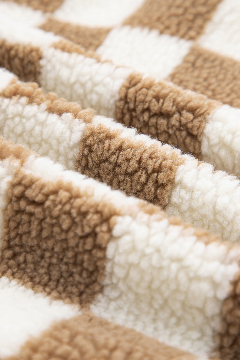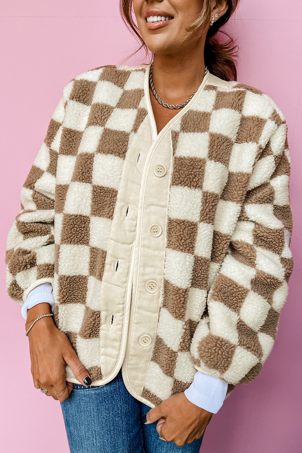 Brown Checkered Sherpa Buttoned Front Chunky Jacket