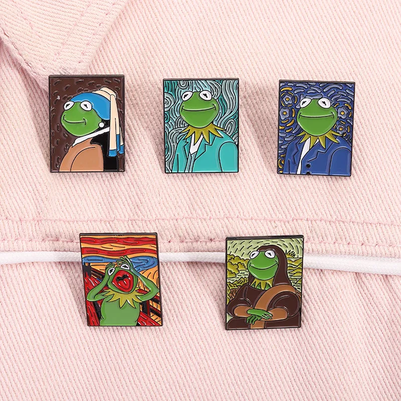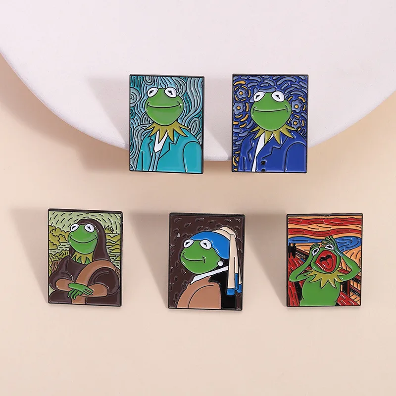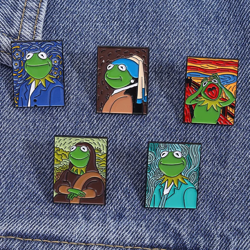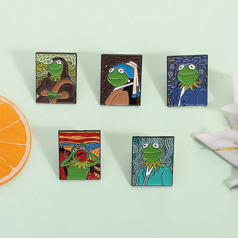 Wholesale Cartoon Style Cowboy Style Artistic Oil Painting Frog Alloy Stamping Stoving Varnish Plating Unisex Hat Pin Brooches