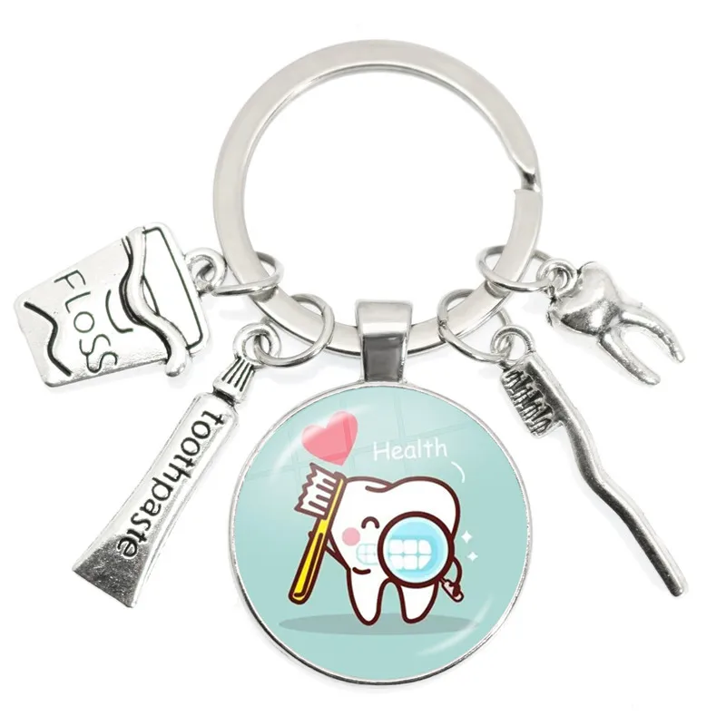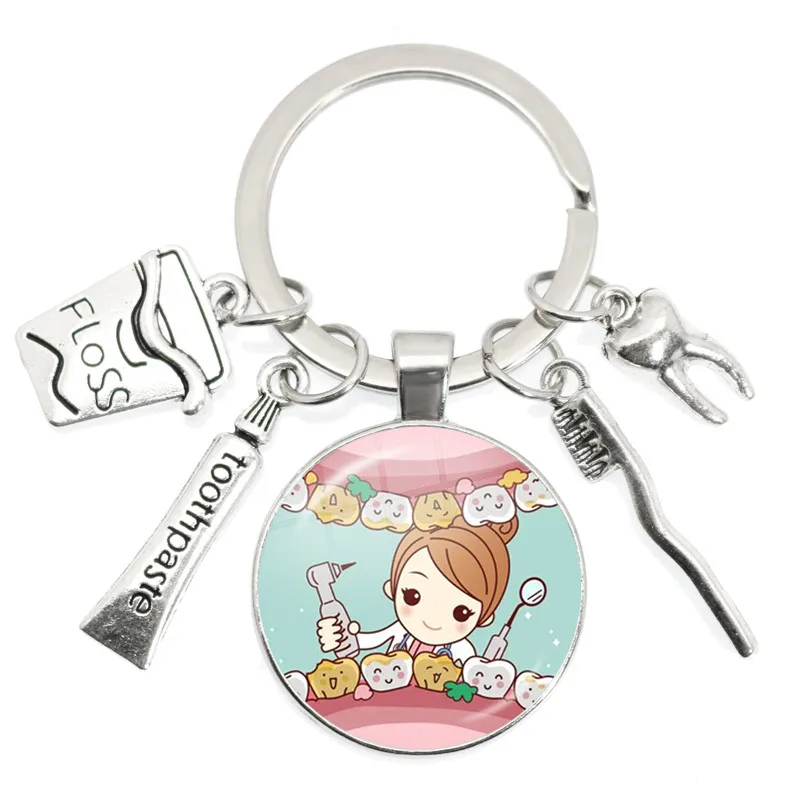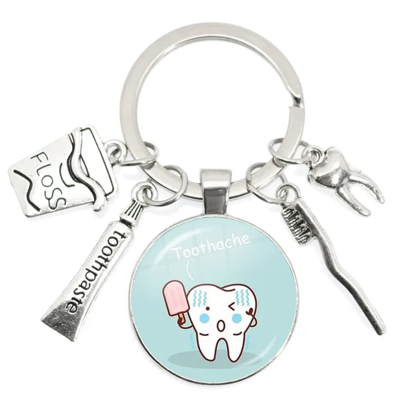 Wholesale cartoon style teeth alloy glass unisex bag pendant keychain