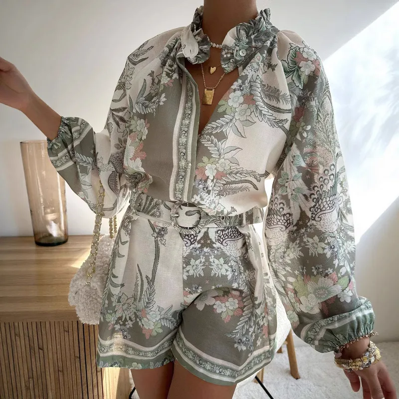 Wholesale Casual Daily Women's Elegant Vacation Flower Linen Polyester Hemp Shorts Co-ord Set Shorts Sets