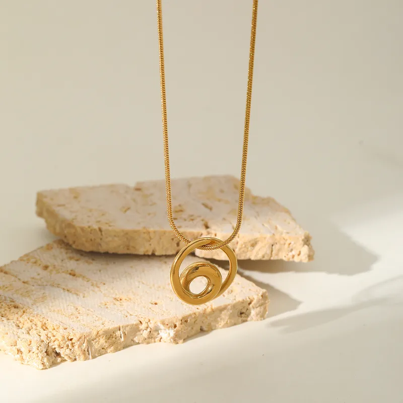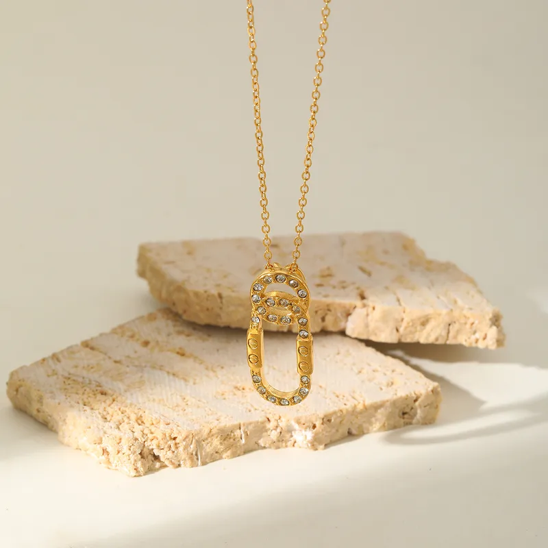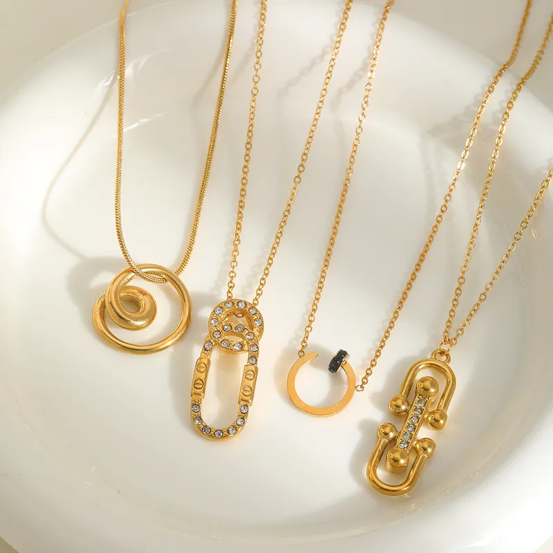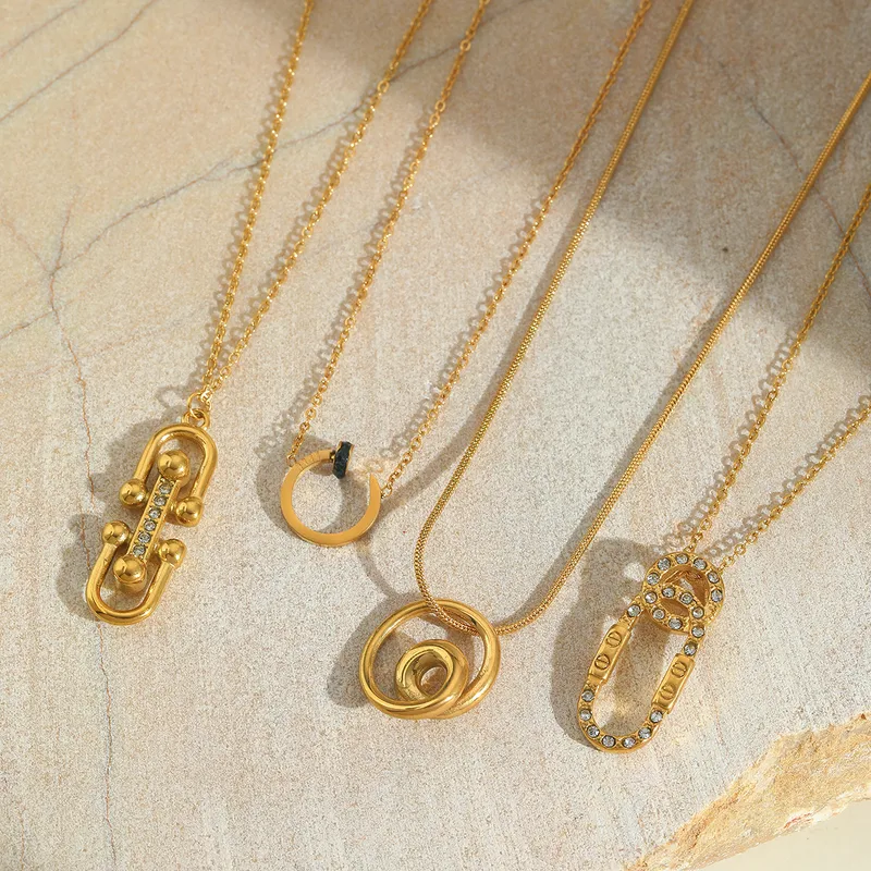 Wholesale Casual Elegant Commute C Shape Round Rectangle 304 Stainless Steel Inlay Zircon 18K Gold Plated Women's Pendant Necklace
