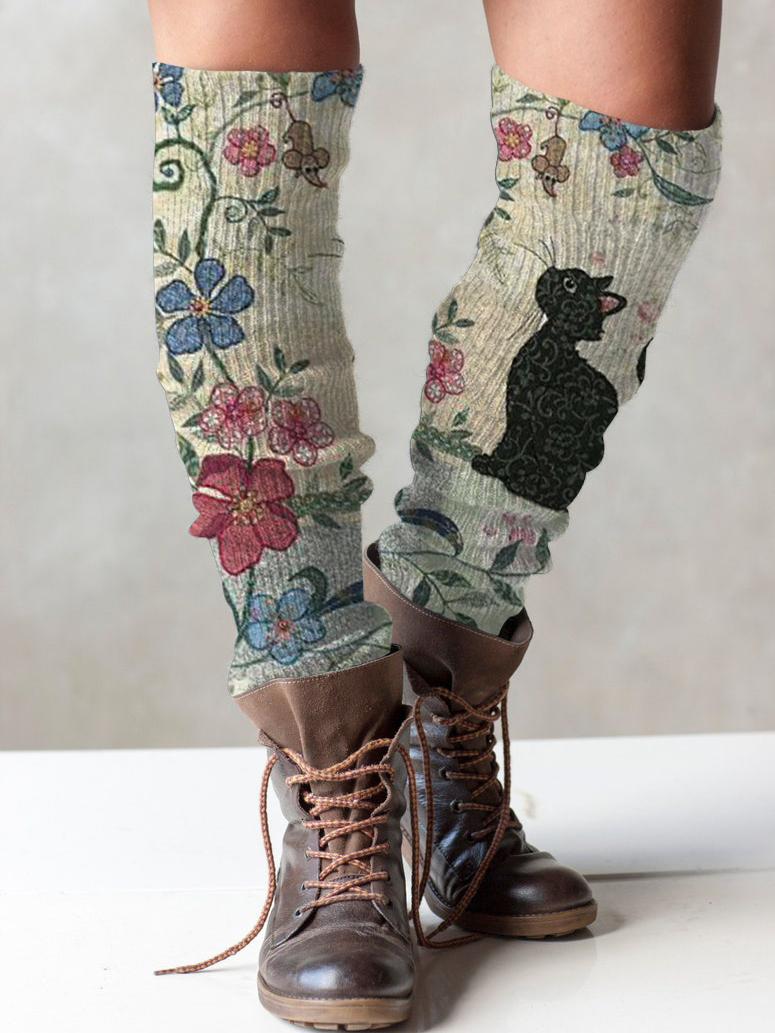 Casual Flower Round Neck Half Sleeve Printing Polyester Knee-length A-line Skirt