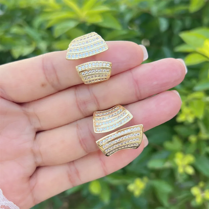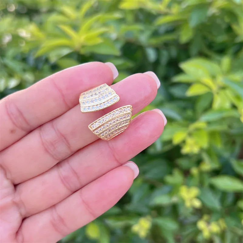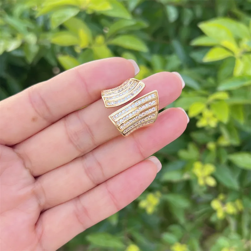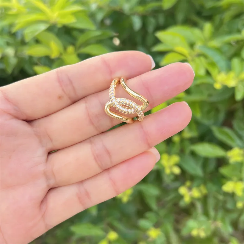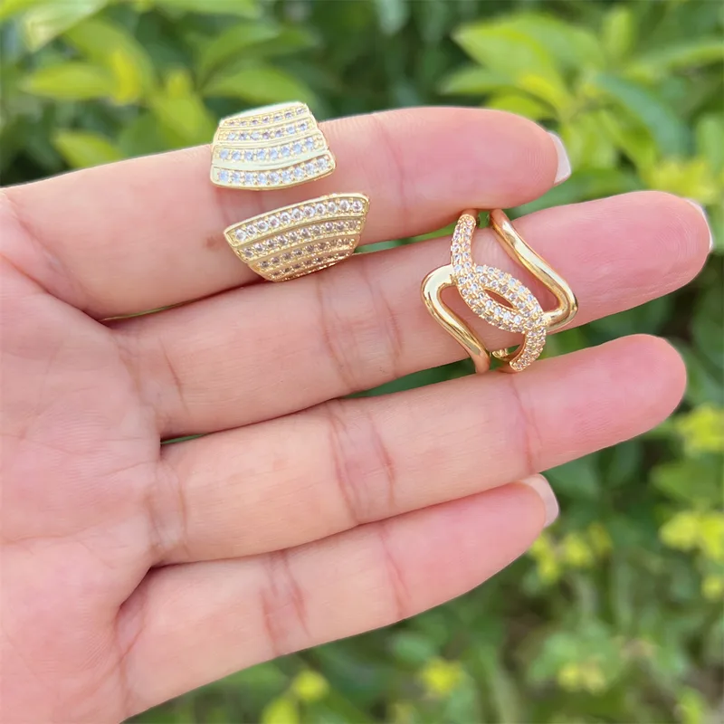 Wholesale Casual Hawaiian Tropical Geometric Copper Inlay Zircon 18K Gold Plated Women's Open Rings
