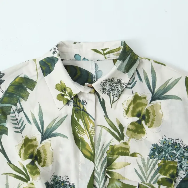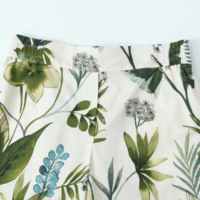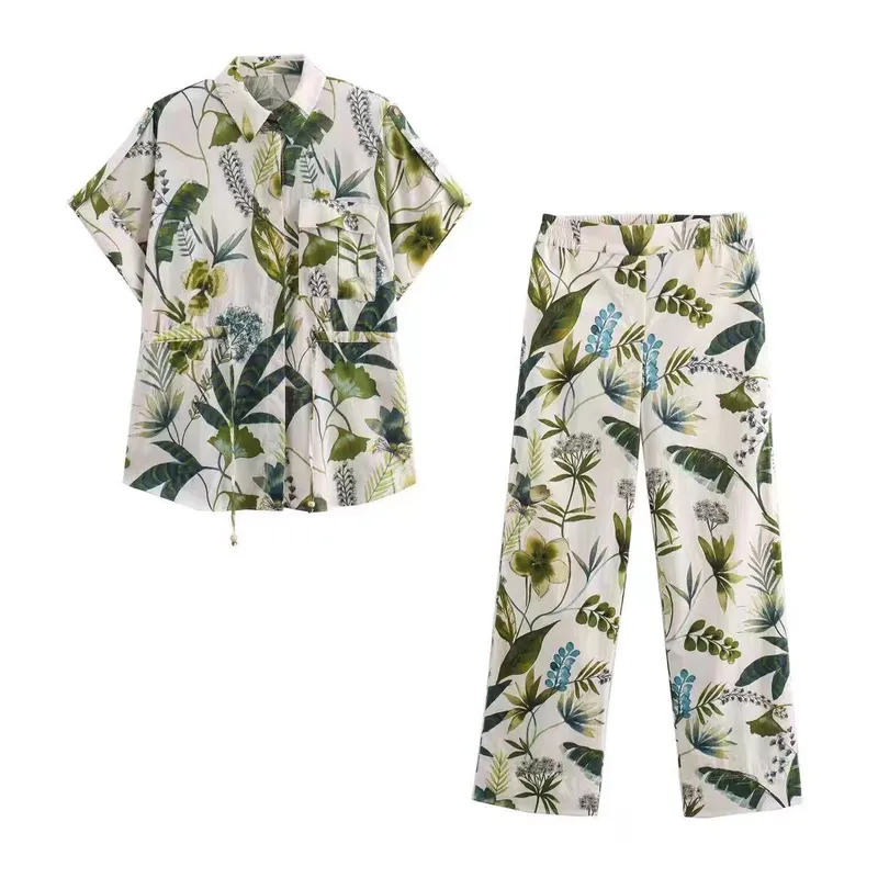 Wholesale Casual Holiday Women's Casual Vacation Plant Spandex Polyester Printing Pants Sets Pants Sets