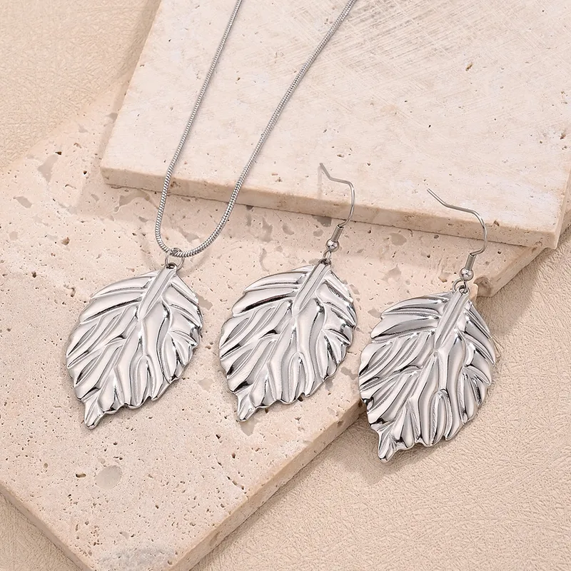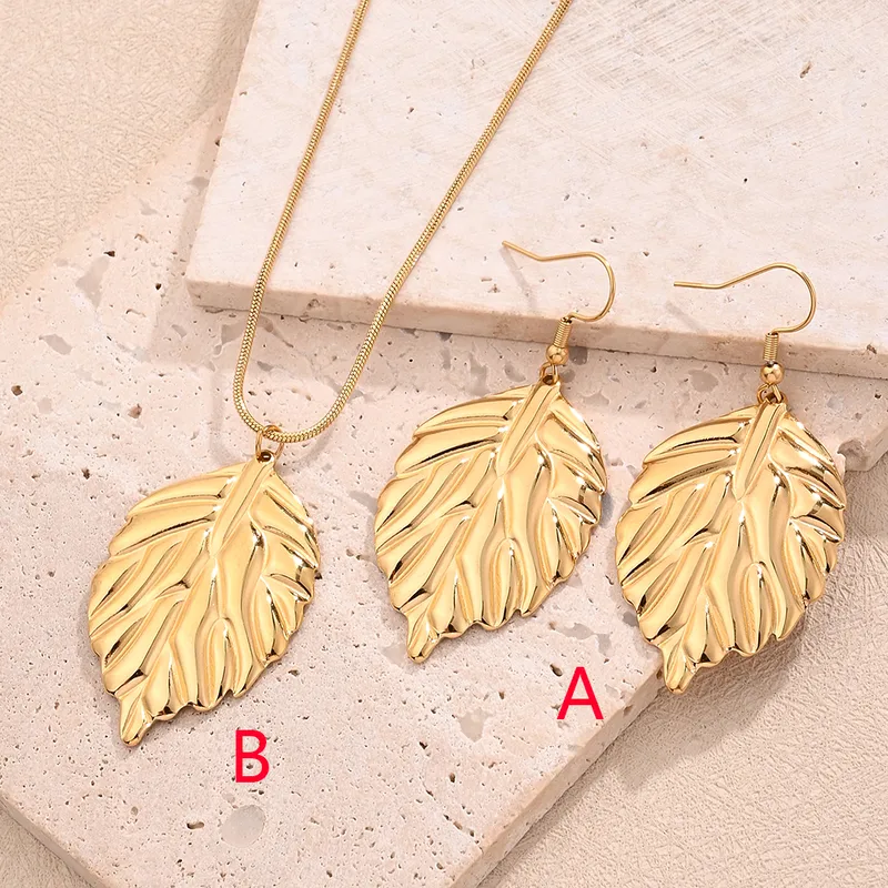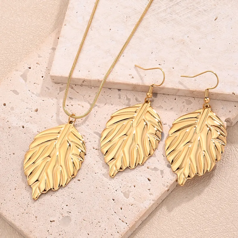 Wholesale Casual Modern Style Sweet Leaf Stainless Steel Polishing Plating 18K Gold Plated Women's Earrings Necklace Jewelry Set