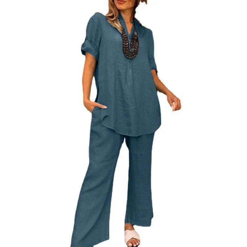 Wholesale Casual Office Daily Women's Temperament Commuter Urban Style Solid Color Cotton Leisure Suit Shorts Sets