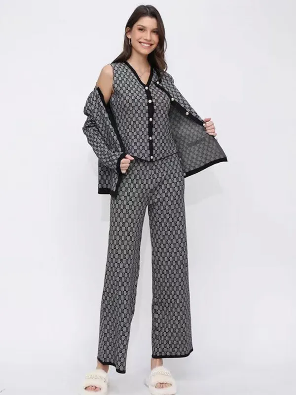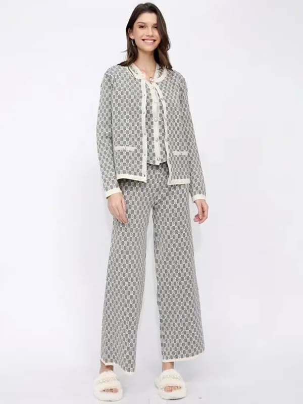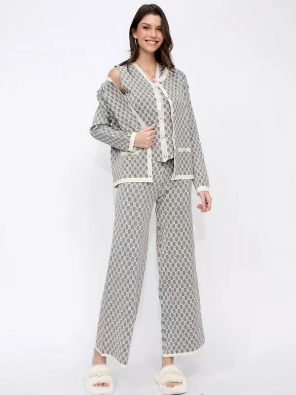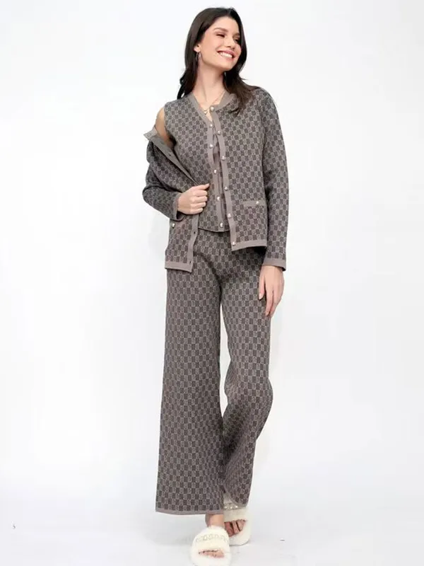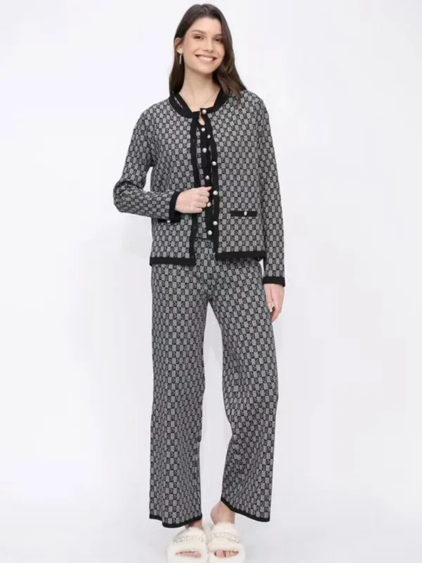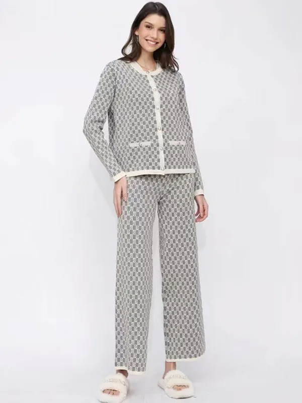 Casual Outdoor Women's Casual Vintage Style Grid Polyester Pants Sets Pants Sets