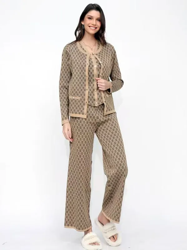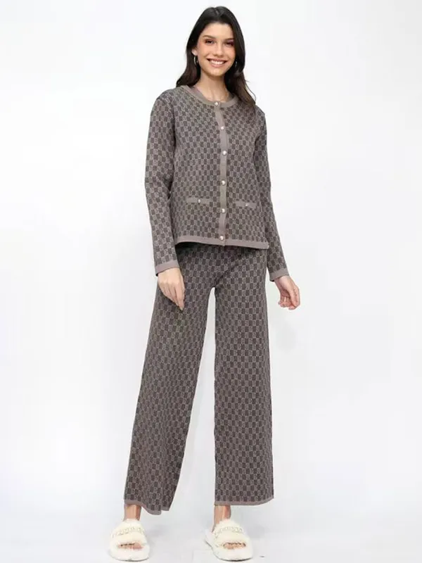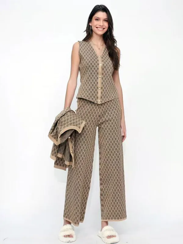 Wholesale Casual Outdoor Women's Casual Vintage Style Grid Polyester Pants Sets Pants Sets