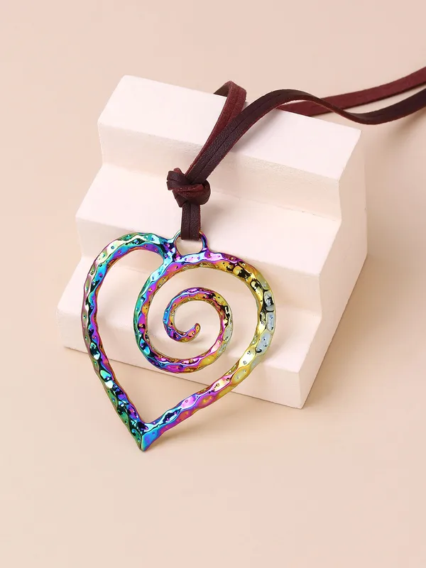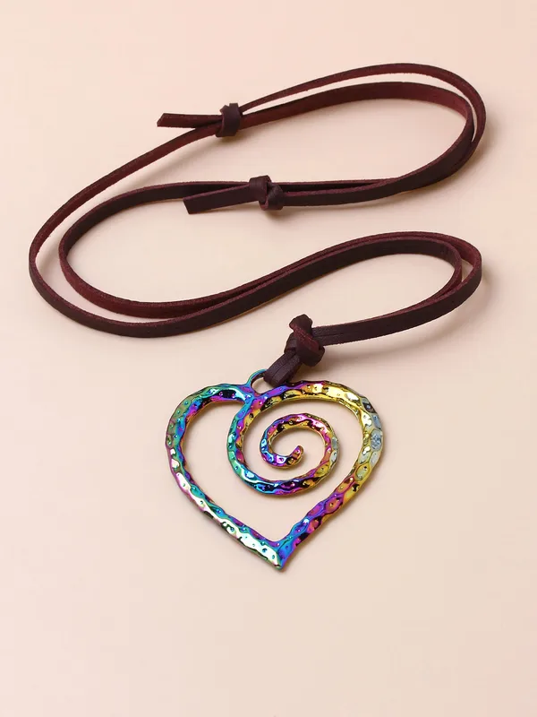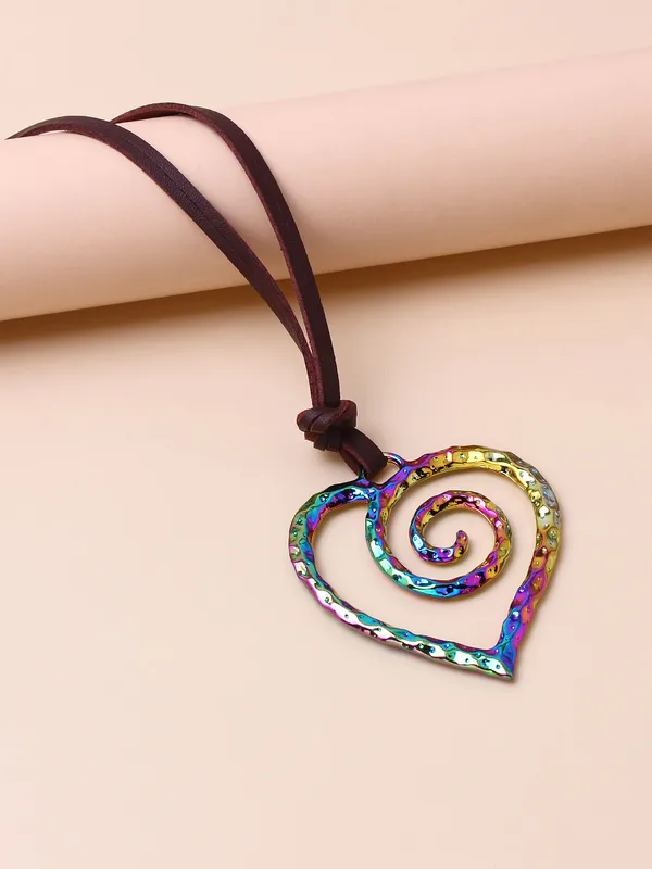 Wholesale Casual Retro Heart Shape Pu Leather Alloy Wholesale Pendant Necklace