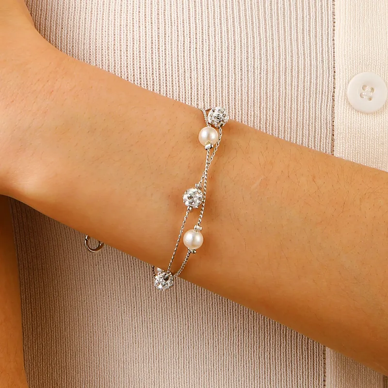 Wholesale Casual Simple Style Streetwear Geometric Artificial Pearls Copper Wholesale Bracelets