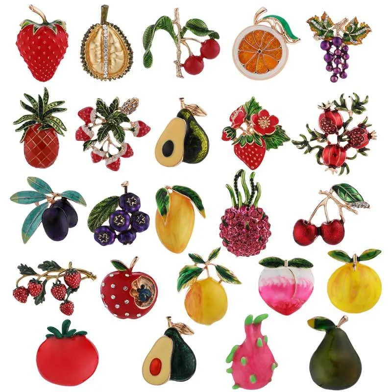 Wholesale casual sweet fruit alloy enamel plating inlay rhinestones women's brooches