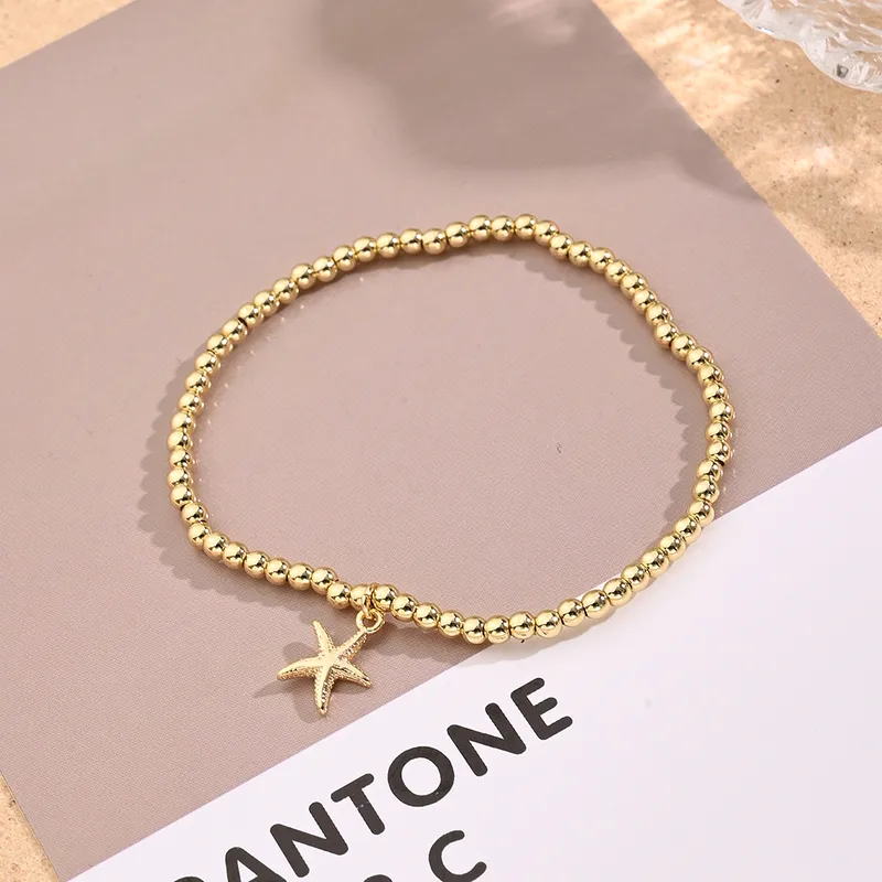 Casual Vacation Modern Style Pentagram Starfish Shell Copper Handmade Polishing Inlay Zircon 18K Gold Plated Women's Bracelets