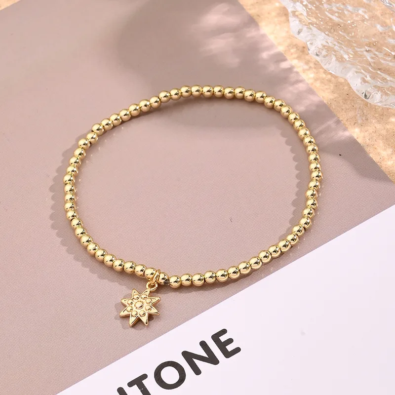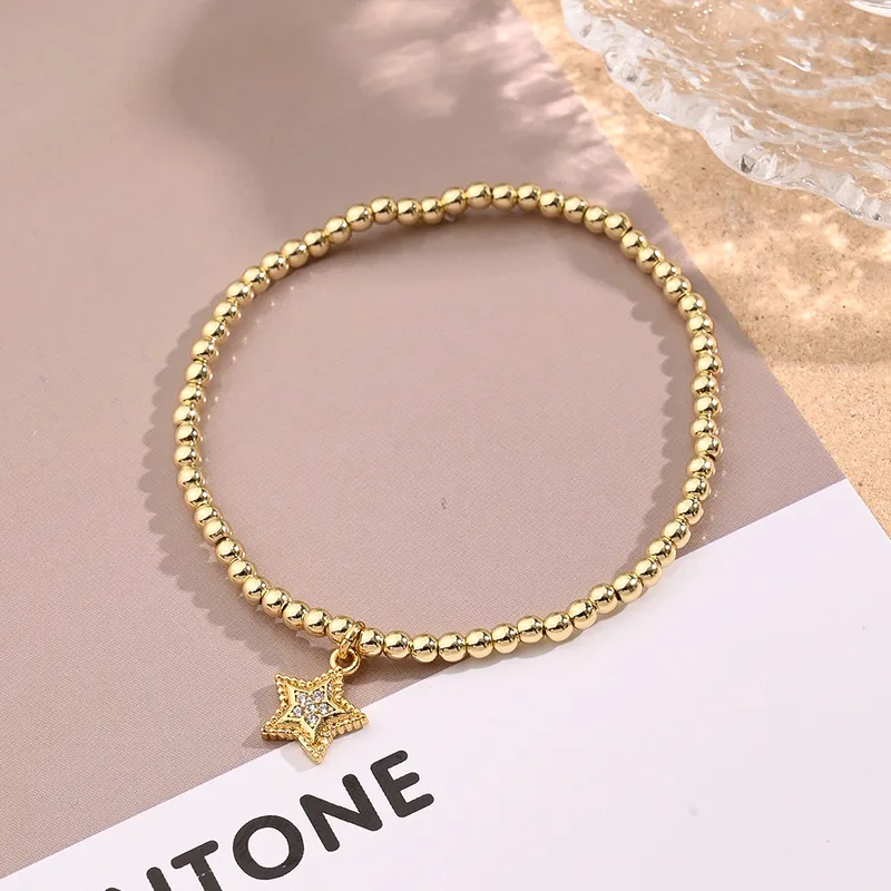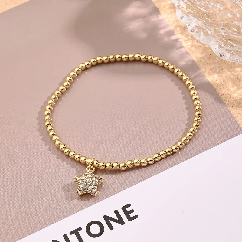 Wholesale Casual Vacation Modern Style Pentagram Starfish Shell Copper Handmade Polishing Inlay Zircon 18K Gold Plated Women's Bracelets