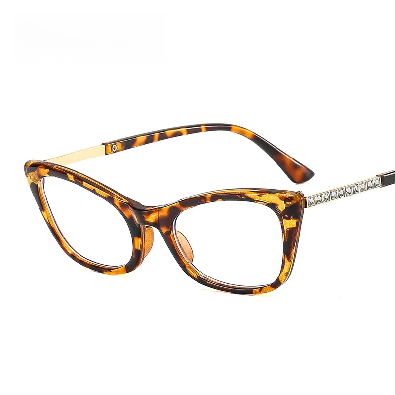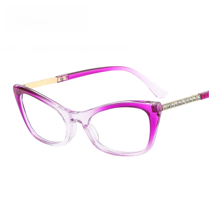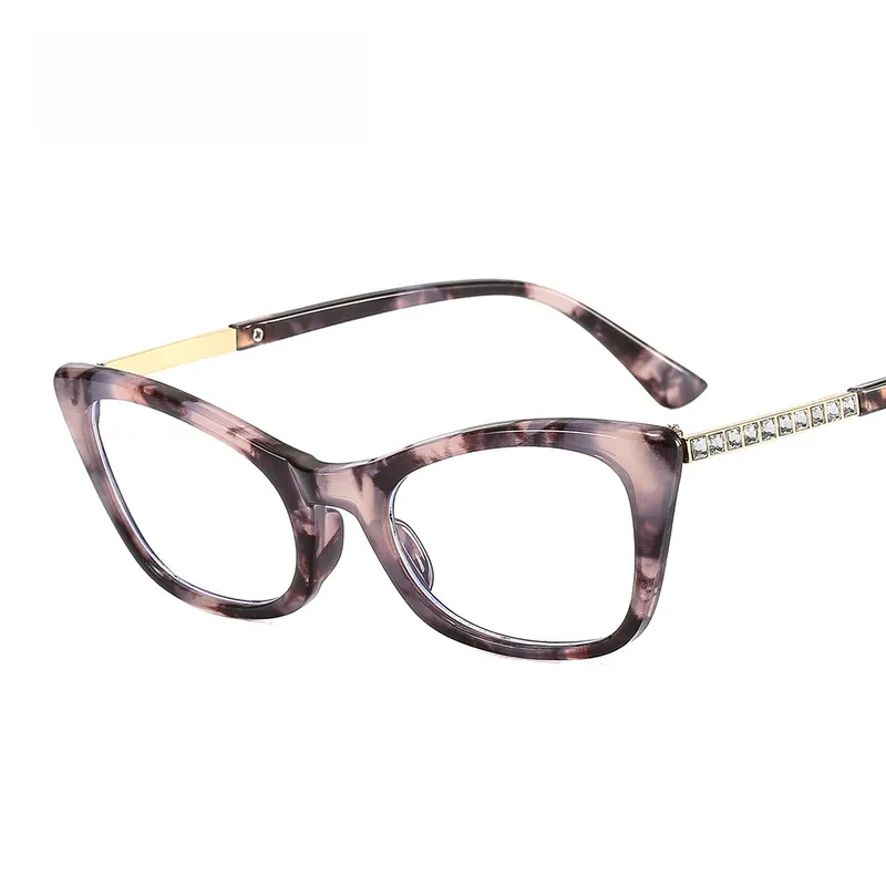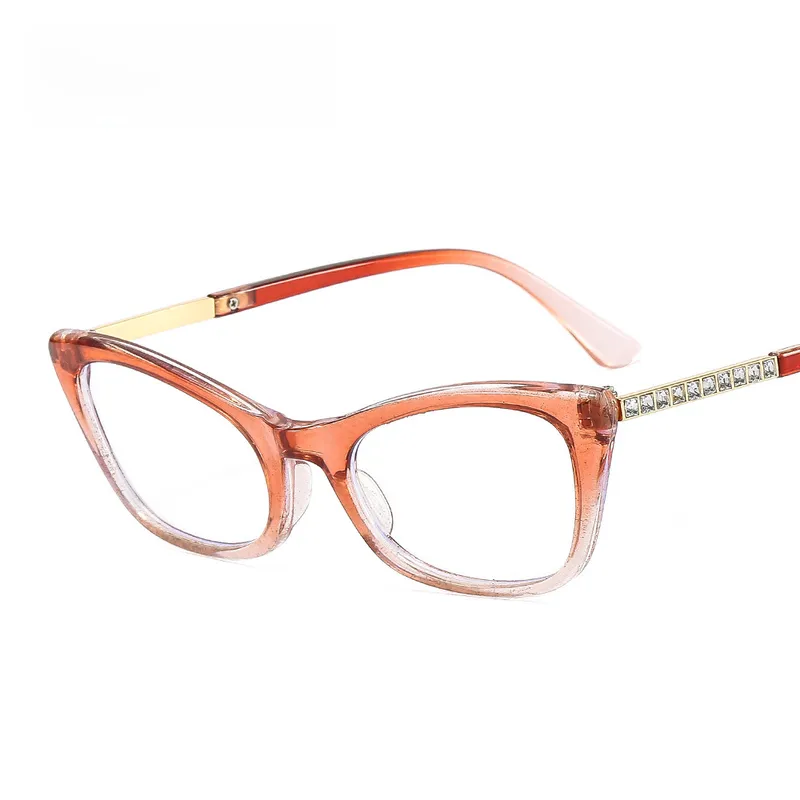Cat's Eye Diamond New Women's Plain Glasses Glasses Frame Anti-blue Light Fashion Face Repair Glasses 9505