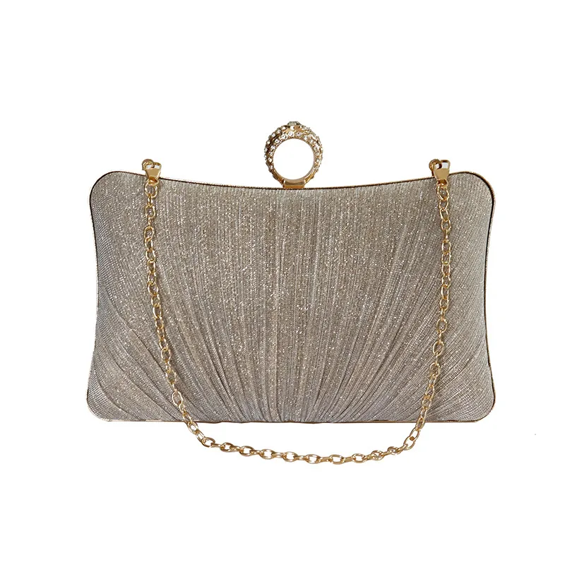 Wholesale champagne silver black polyester solid color square evening bags