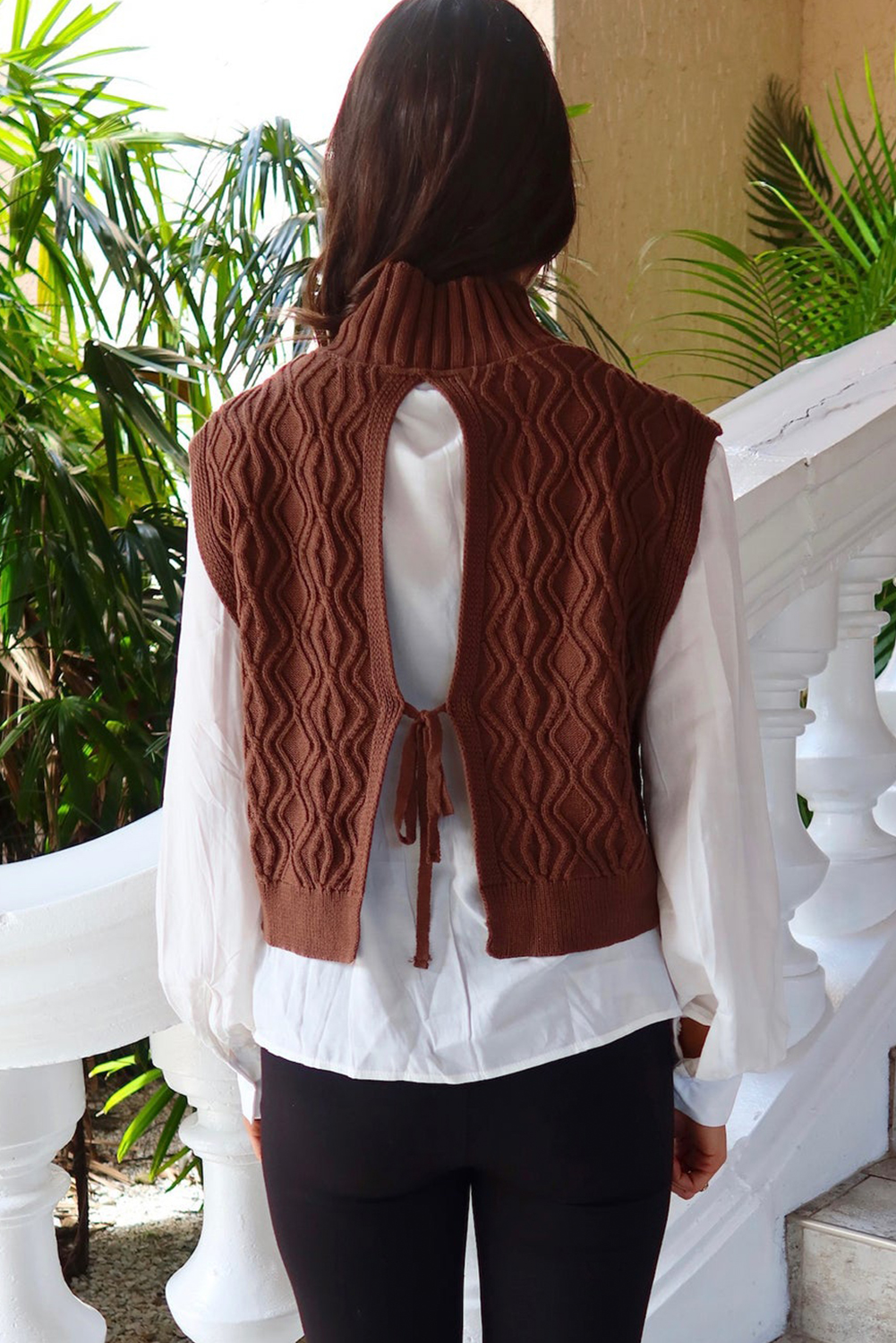 Chestnut Trendy Rhombus Knit Ribbed High Neck Sweater Vest