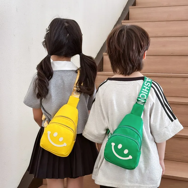 Children's Bag New Girls Smiley Face Shape Baby Pu Chest Bag Boys And Girls Messenger Bag Change Purse Wholesale