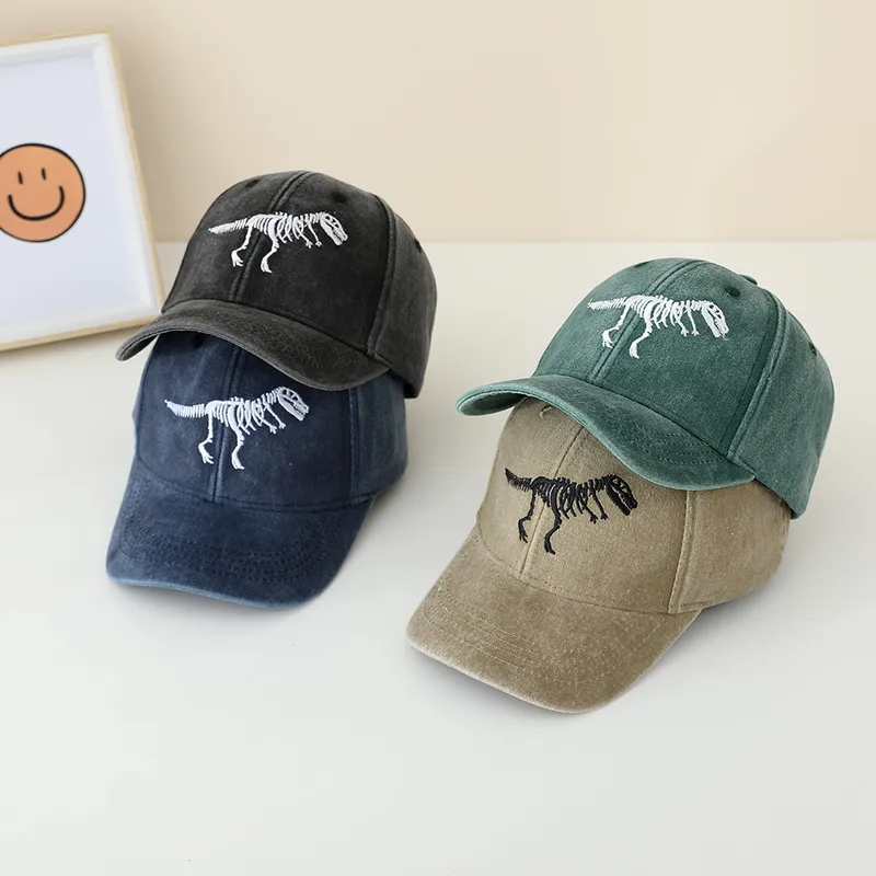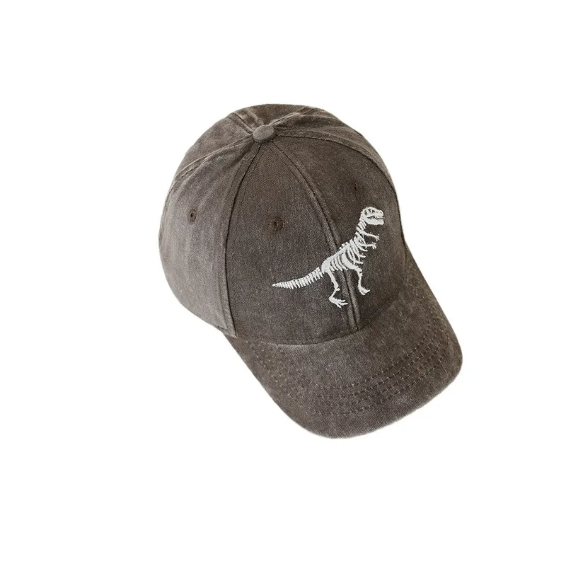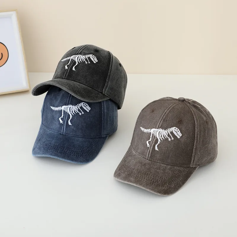 Children's Hat Spring And Autumn Fashion Embroidered Washed Peaked Cap Korean New Retro Cartoon Dinosaur Baseball Cap