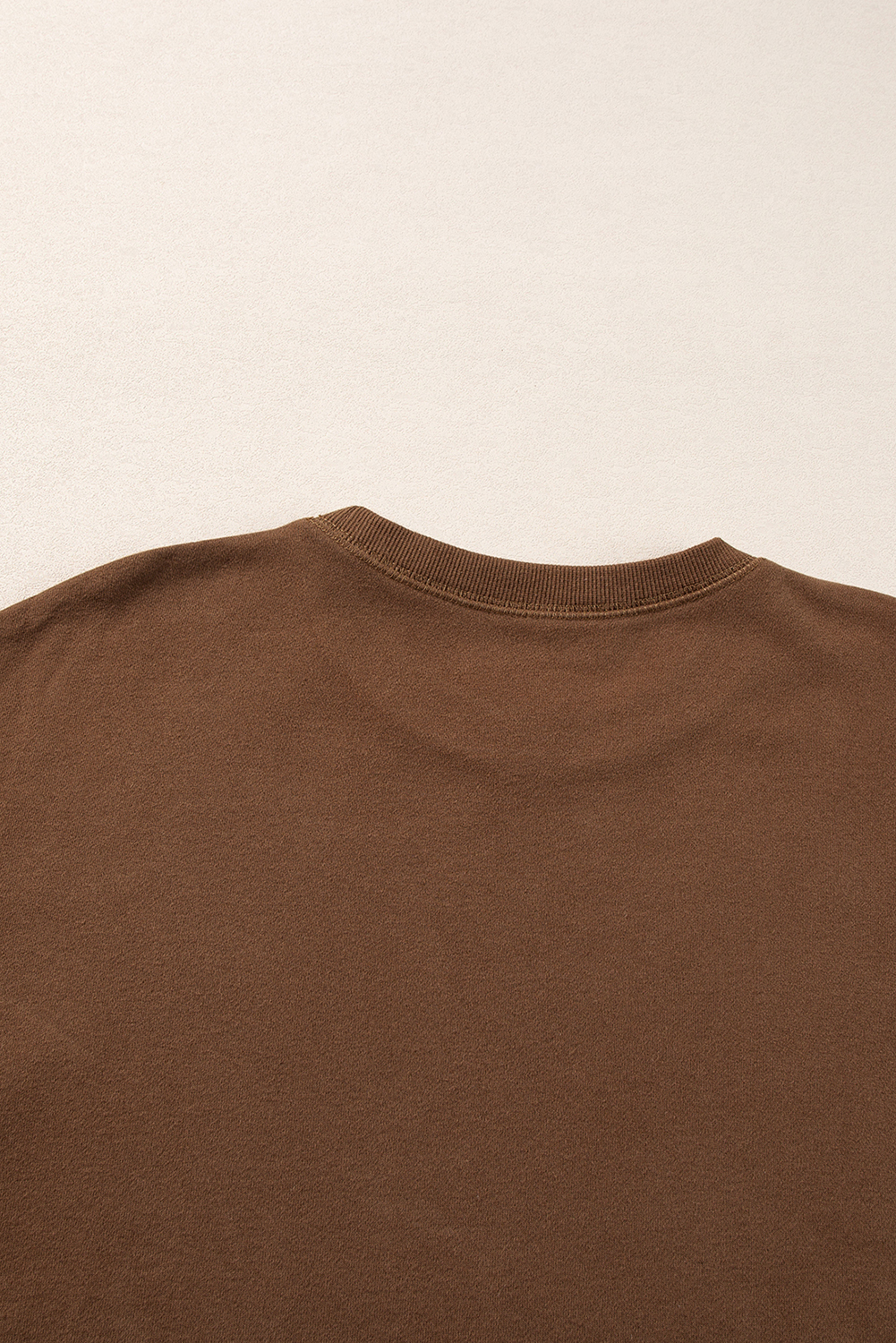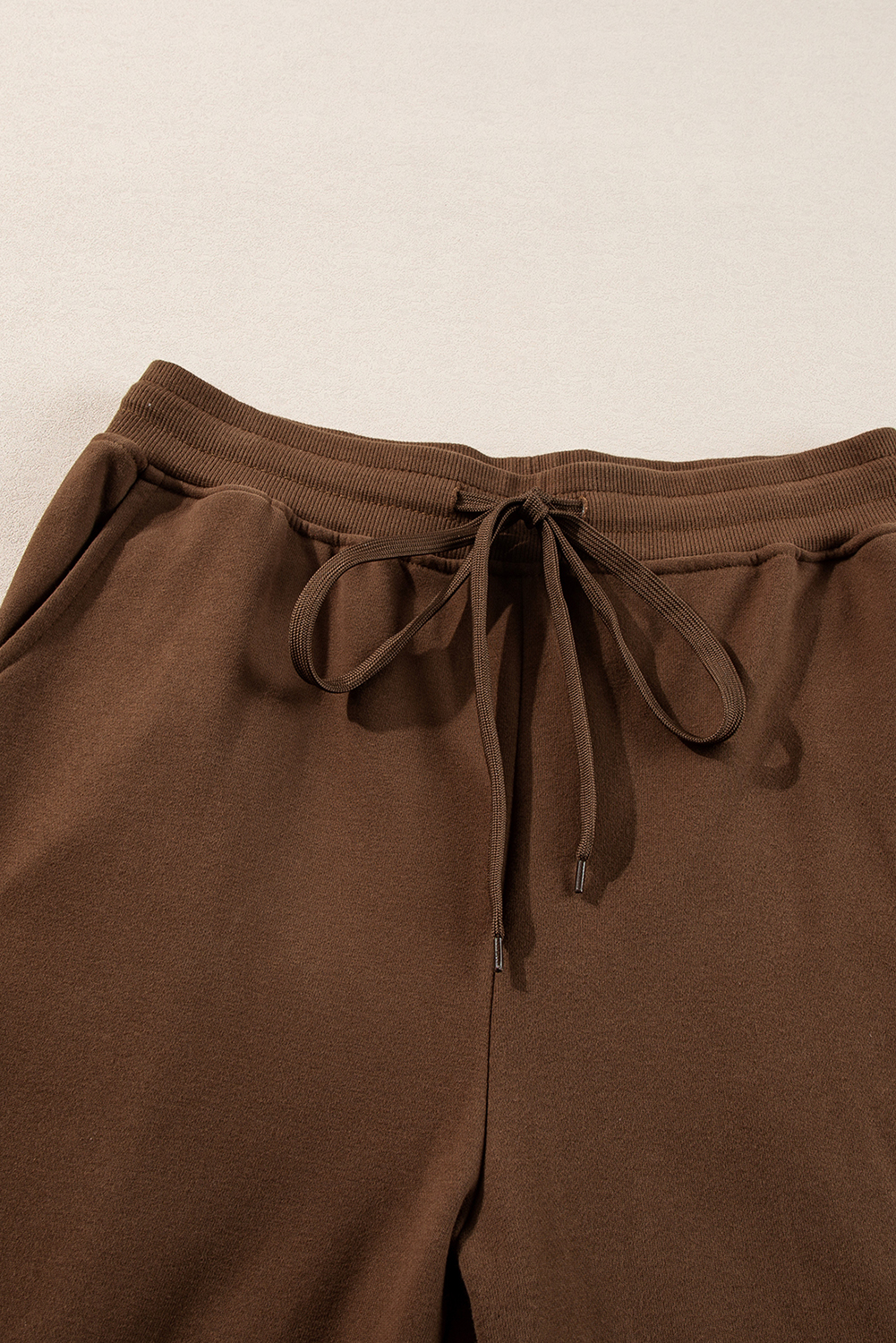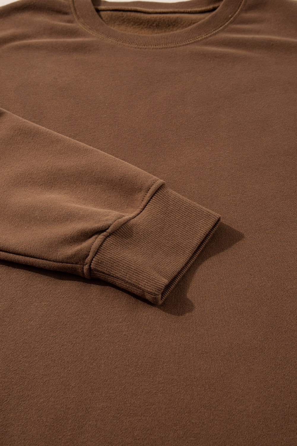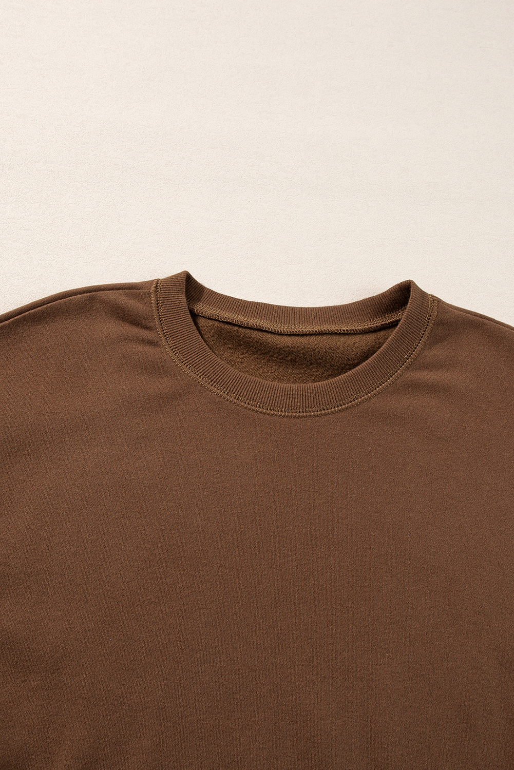 Coffee Solid Color High Low Pullover and Skinny Pants Set