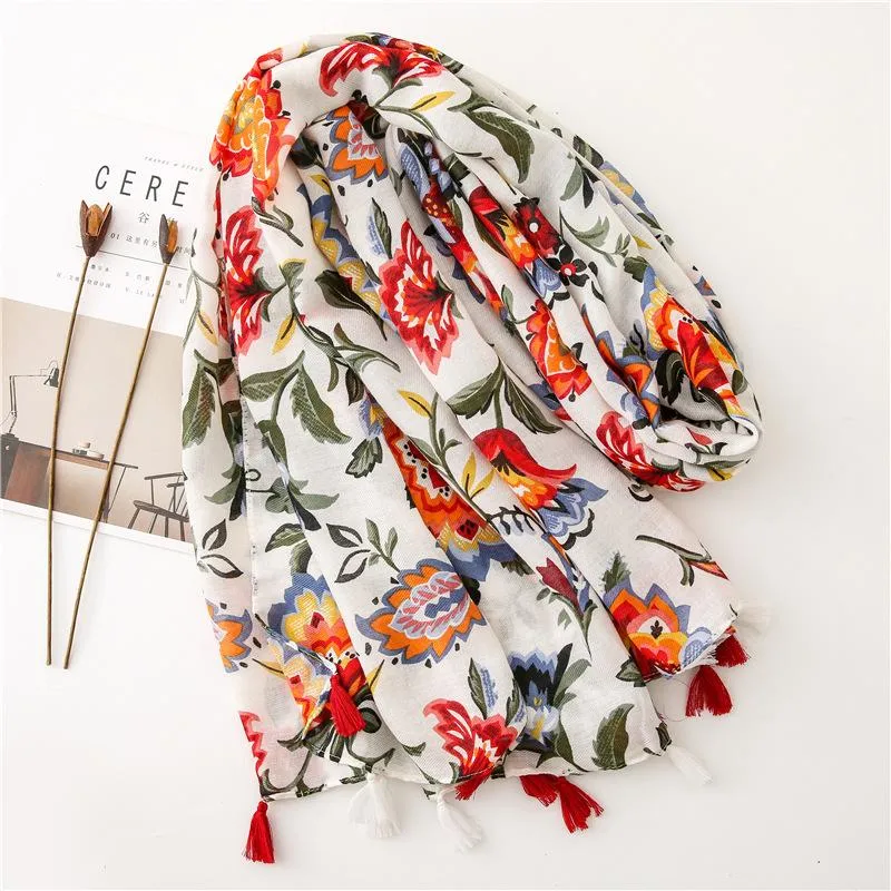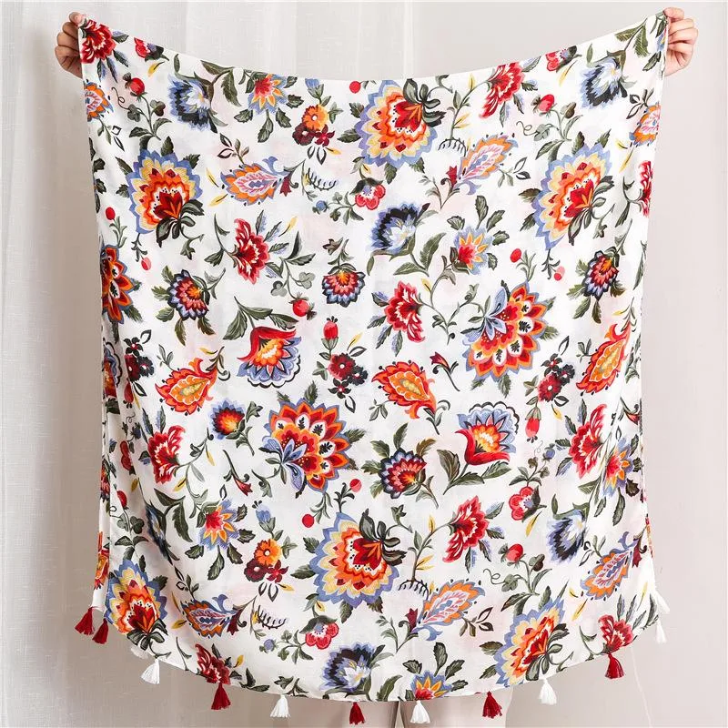 Color Flower Print National Wind Cotton Scarf Scarves Nhgd157609