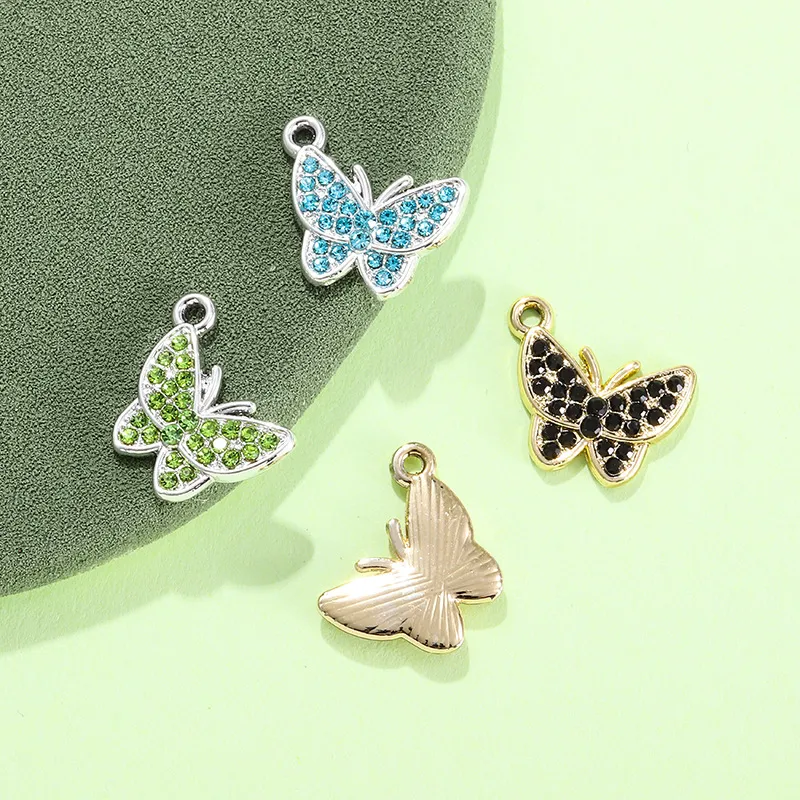 Colorful Diamond Butterfly Diy Bracelet Clavicle Chain Anklet Female Jewelry Pendant UV Color Retaining Alloy Electroplating Accessories