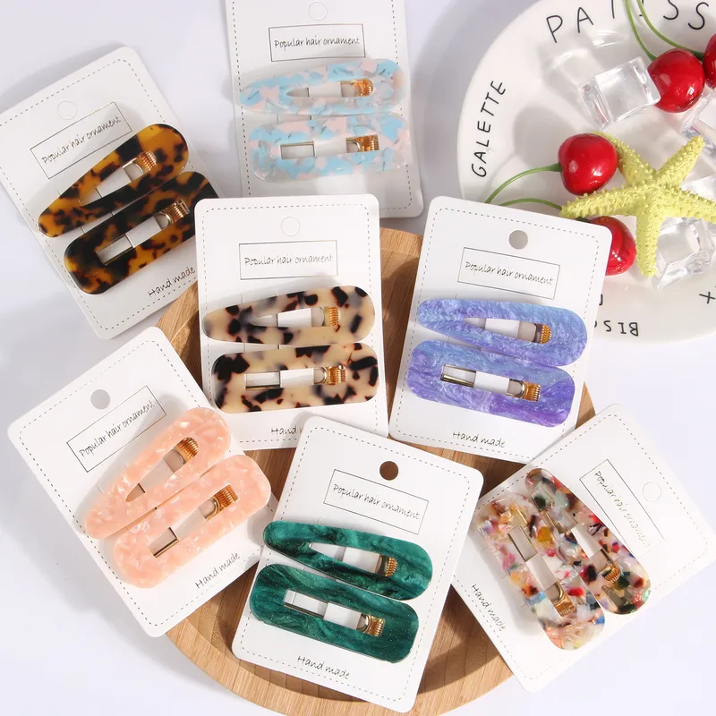 Wholesale colorful geometric-shaped hollow out two-piece hair clip set