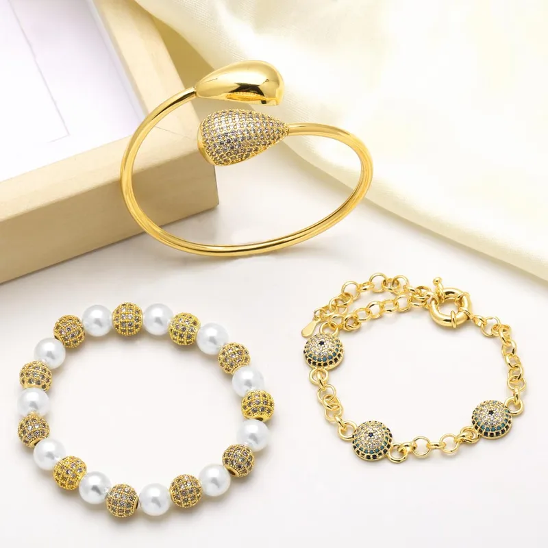 Wholesale Copper 18K Gold Plated Plating Inlay Irregular Zircon Bracelets