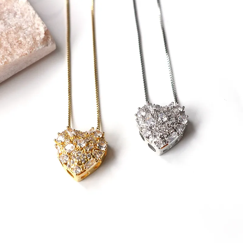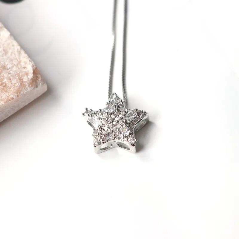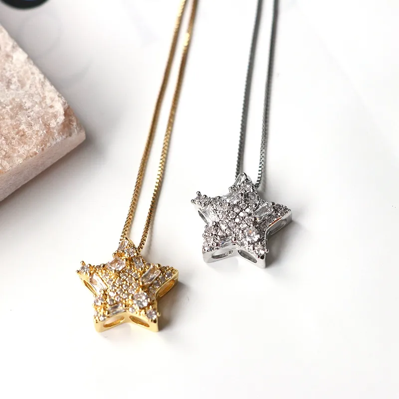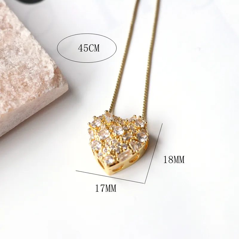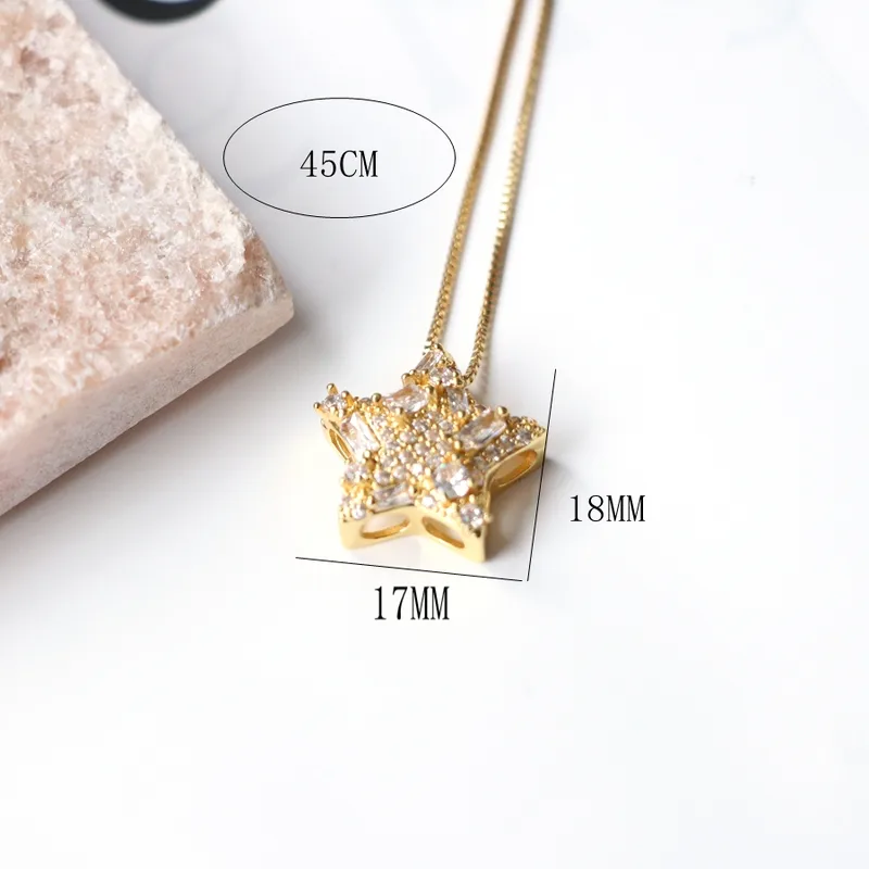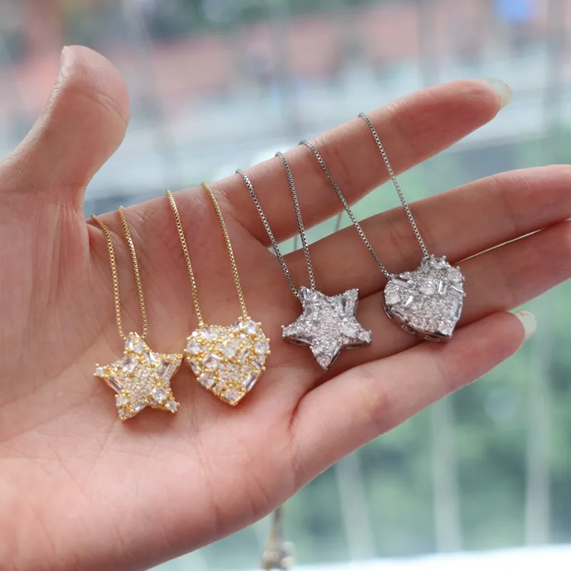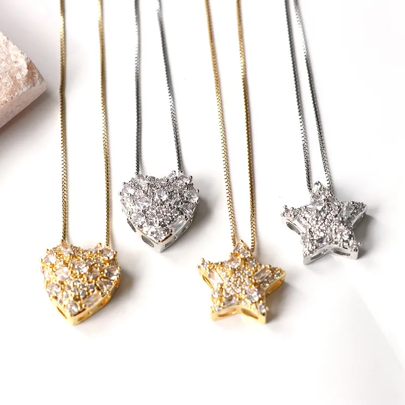 Wholesale Copper 18K Gold Plated Plating Inlay Star Heart Shape Zircon Pendant Necklace