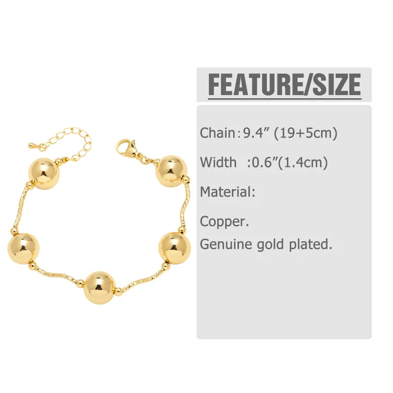 Copper 18K Gold Plated Plating Round Bracelets Necklace