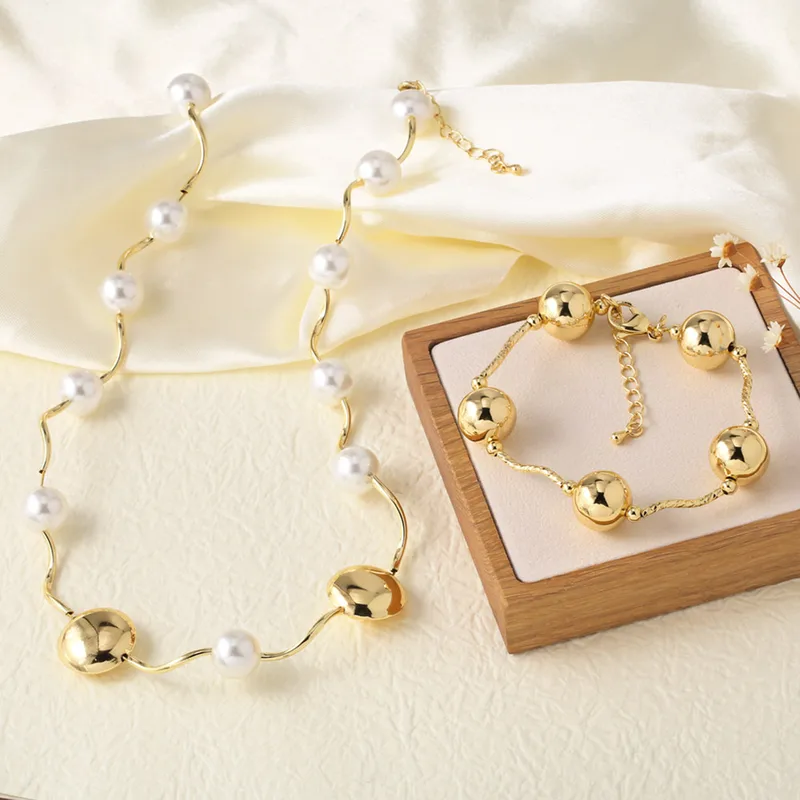 Wholesale Copper 18K Gold Plated Plating Round Bracelets Necklace
