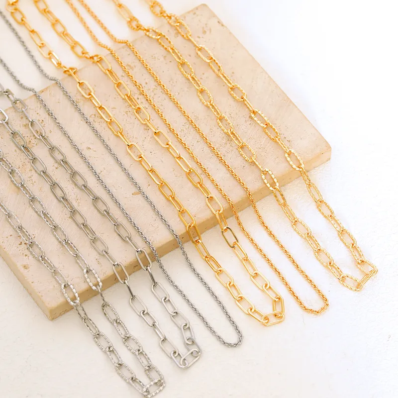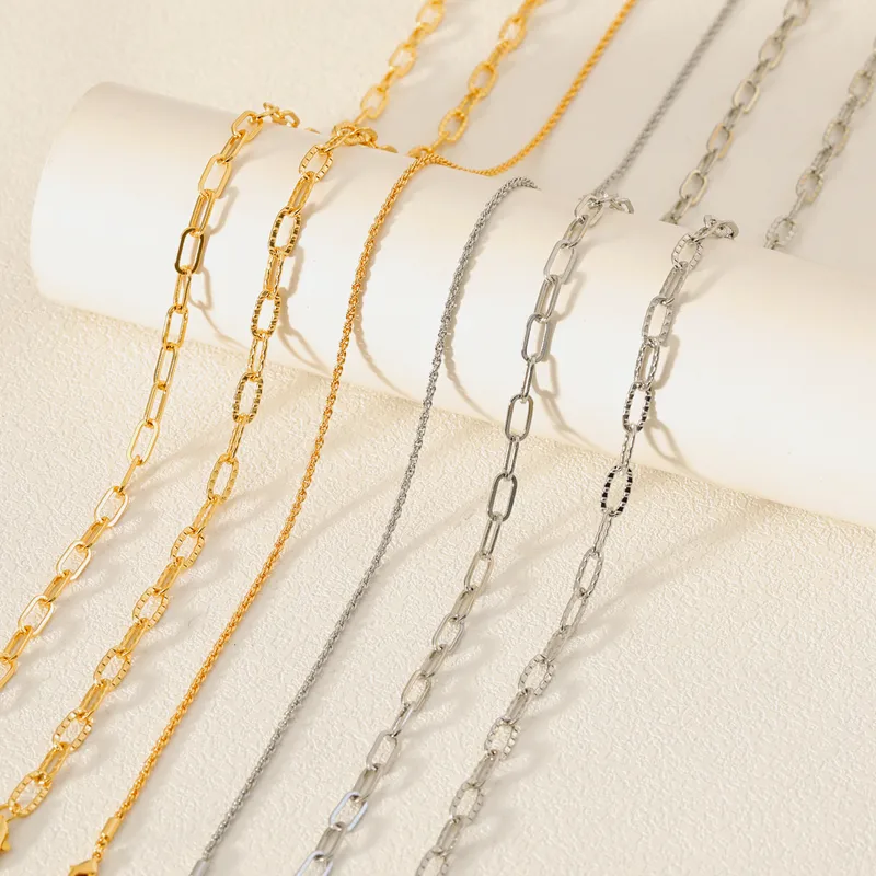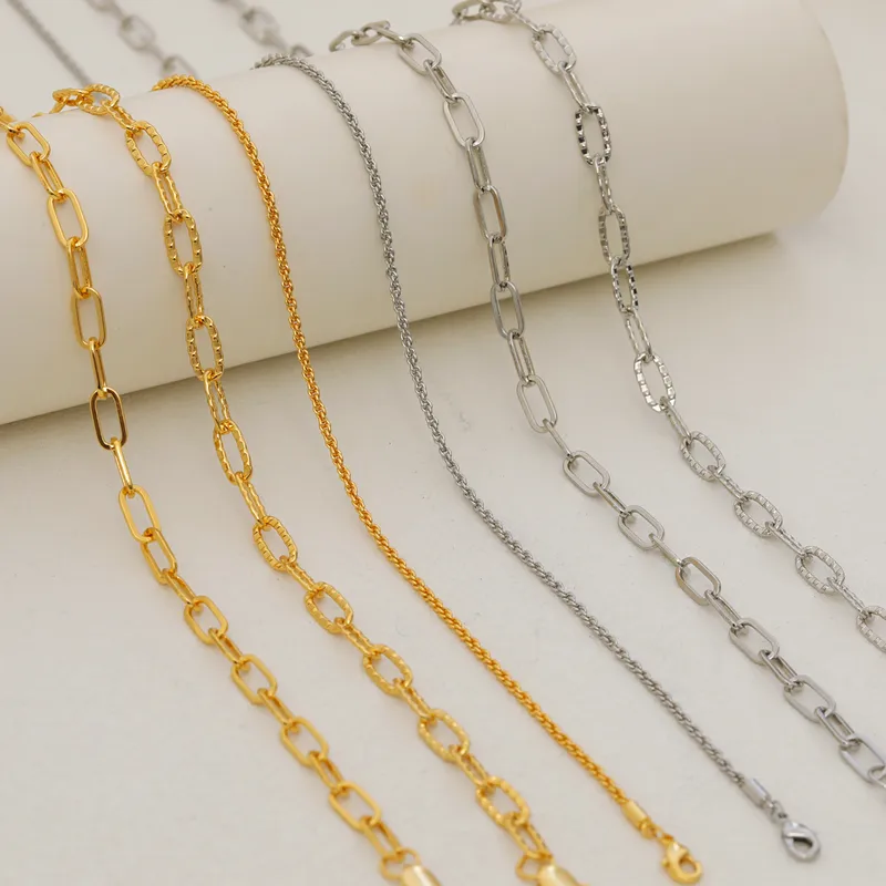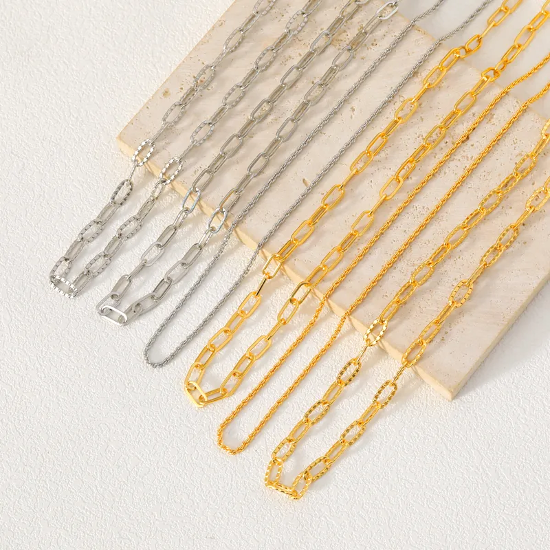Wholesale Copper 18K Gold Plated White Gold Plated Punk Beach Commute Paper Clip Twist Sweater Chain