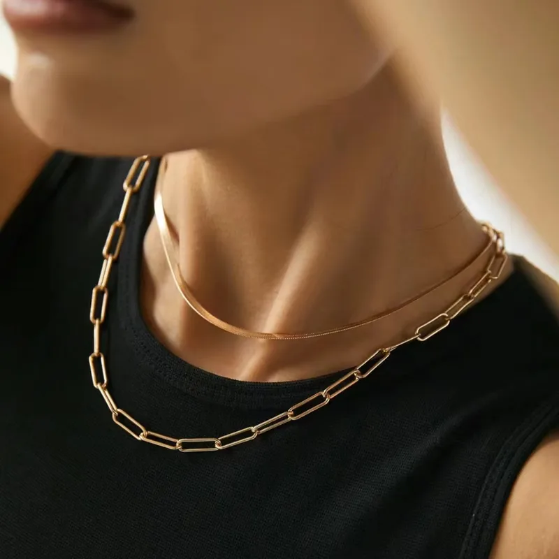 Copper 18K Gold Plated White Gold Plated Punk Beach Commute Paper Clip Twist Sweater Chain