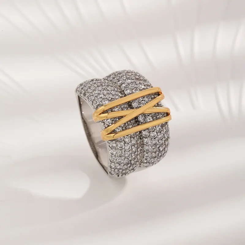 Wholesale Copper White Gold Plated Inlay Geometric Zircon Rings