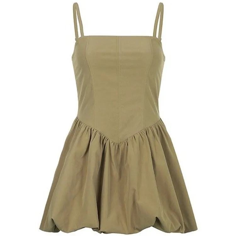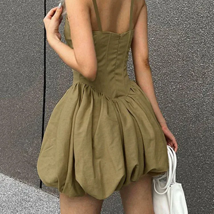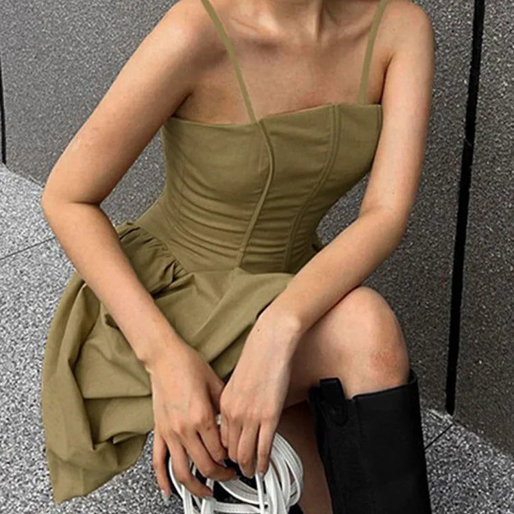 Corset Fishbone Bubble Mini Skirt Summer New Pleated Slim-Fit Strap Puffy Dress Short Tight Waist