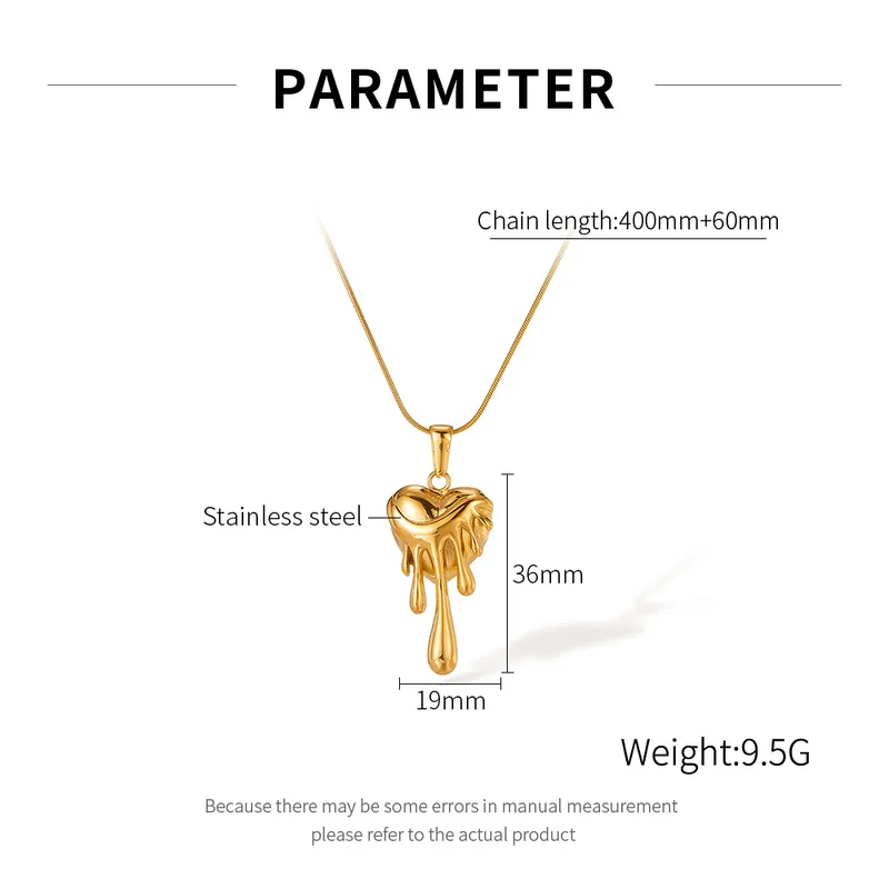 Cross-Border European And American Style Fashion Special-Interest Retro Design Stainless Steel Lava Heart Water Drops Pendant High-Grade Necklace