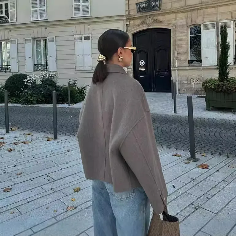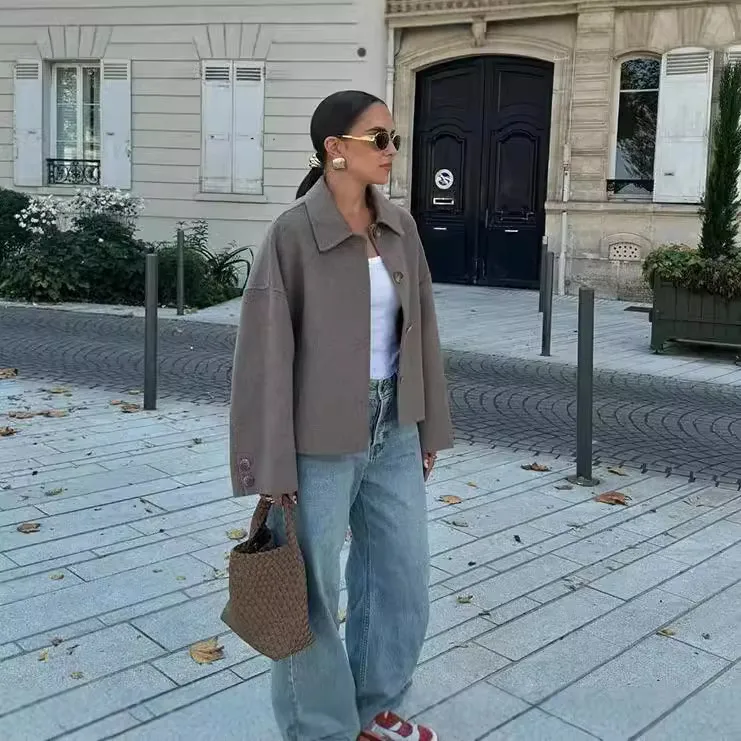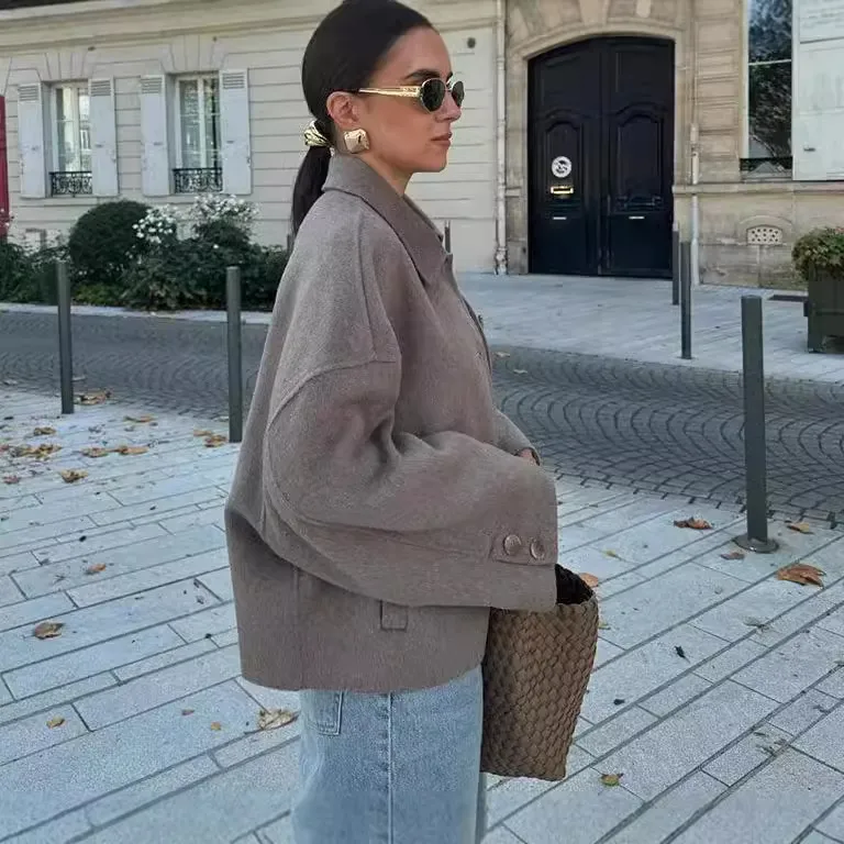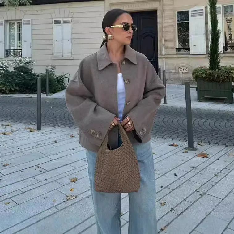 Wholesale Cross-Border European and American Women's Clothing Hot Sale at AliExpress Lapel Button Loose Woolen Coat