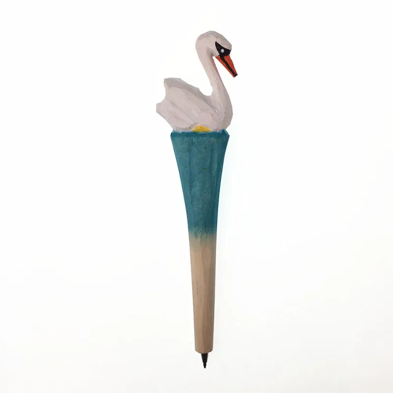 Wholesale cute animal shape wooden engraving series stationery wood-carving pen