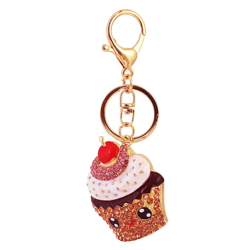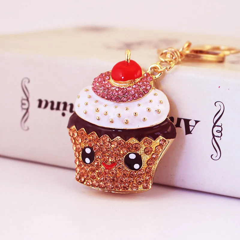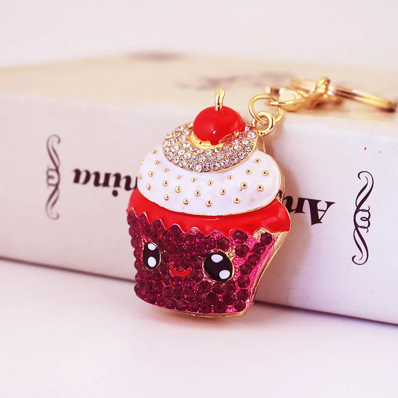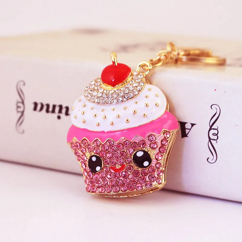 Wholesale cute cake alloy inlay rhinestones women's bag pendant keychain
