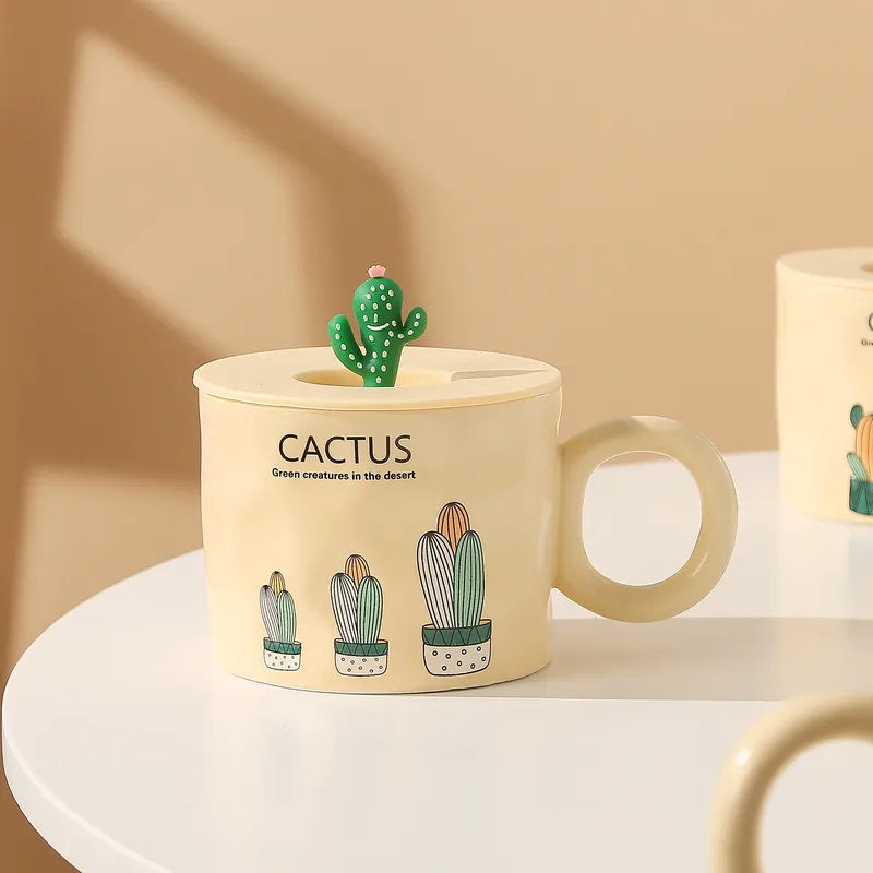Cute Pastoral Cactus Letter Silica Gel Ceramics Water Bottles 1 Piece