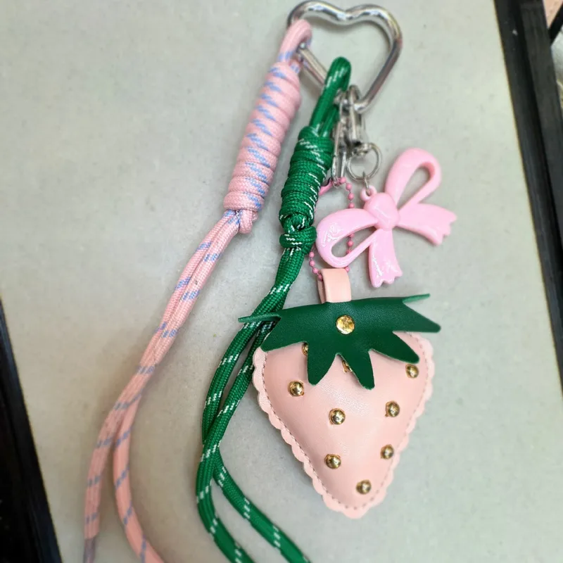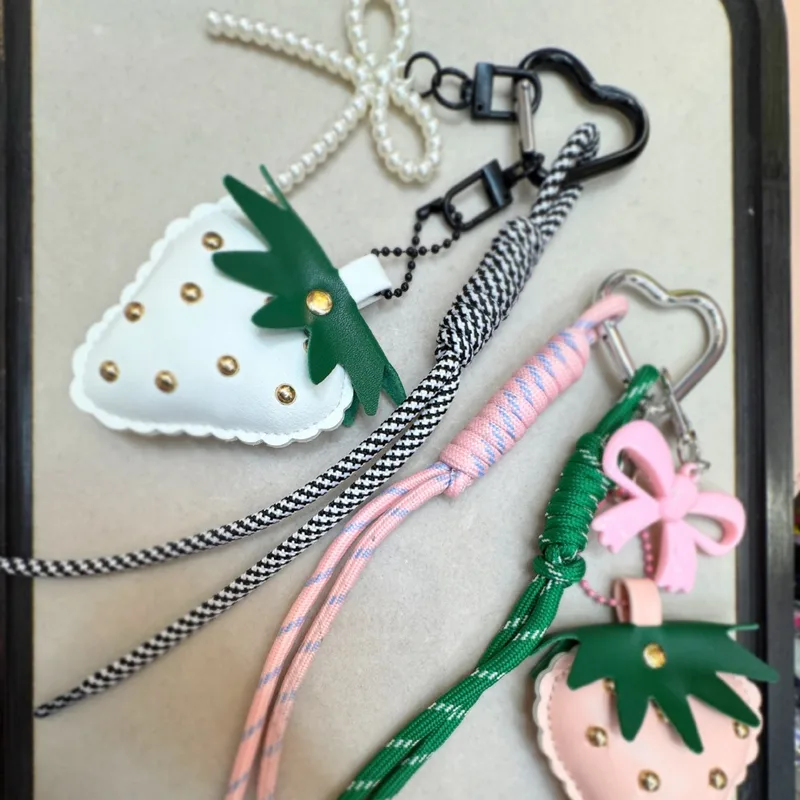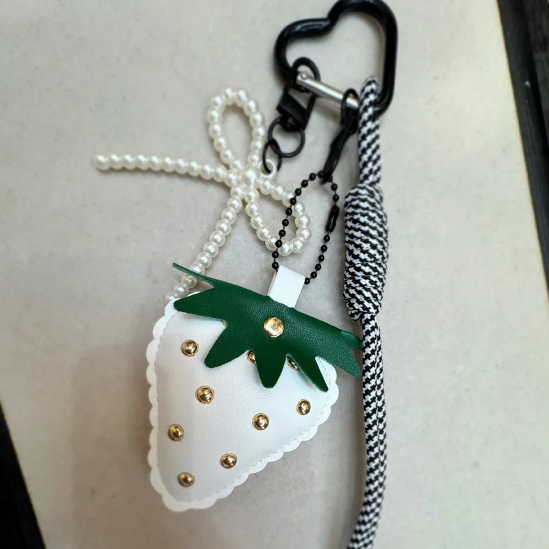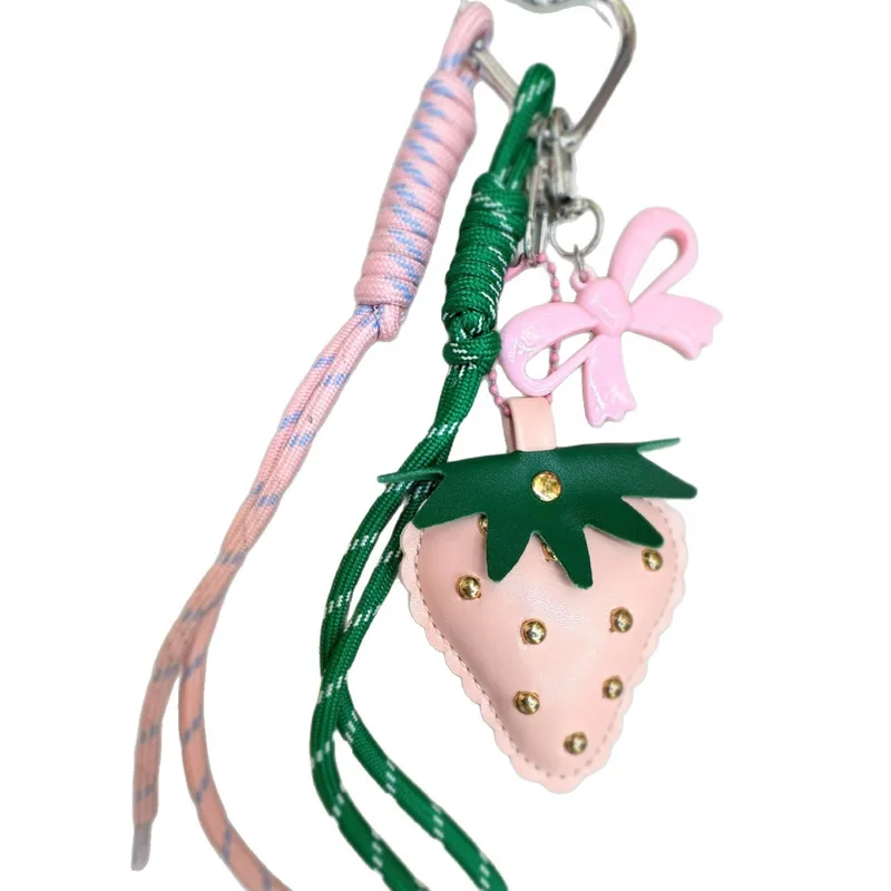 Cute Rivet Strawberry Keychain Pendant Creative Girl's Bag Simple Leather Pearl Pendant Luggage Accessories